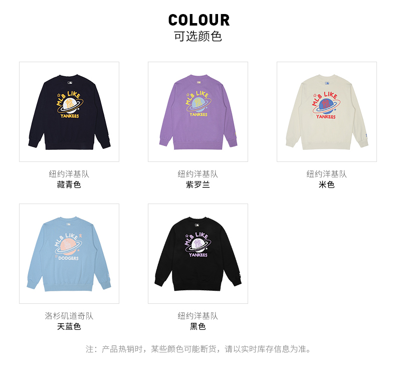 MLB官方 男女卫衣LIKE宽松涂鸦印花情侣款运动21牛年春夏新款MT06