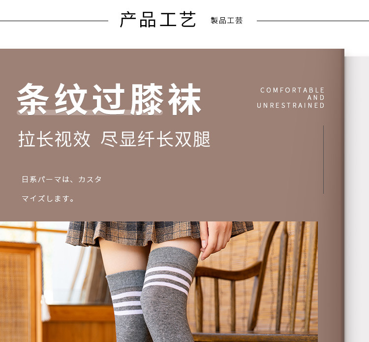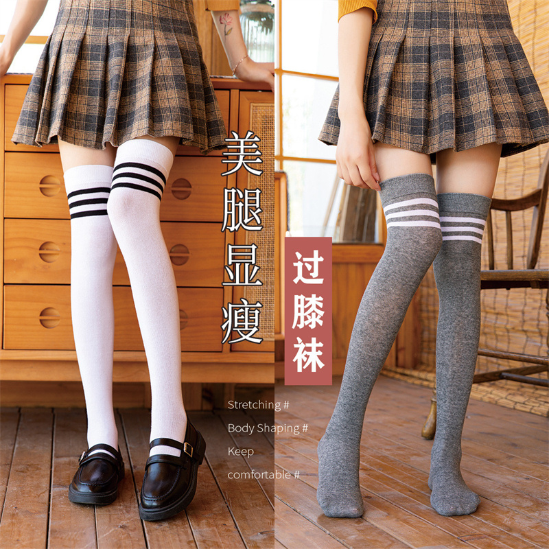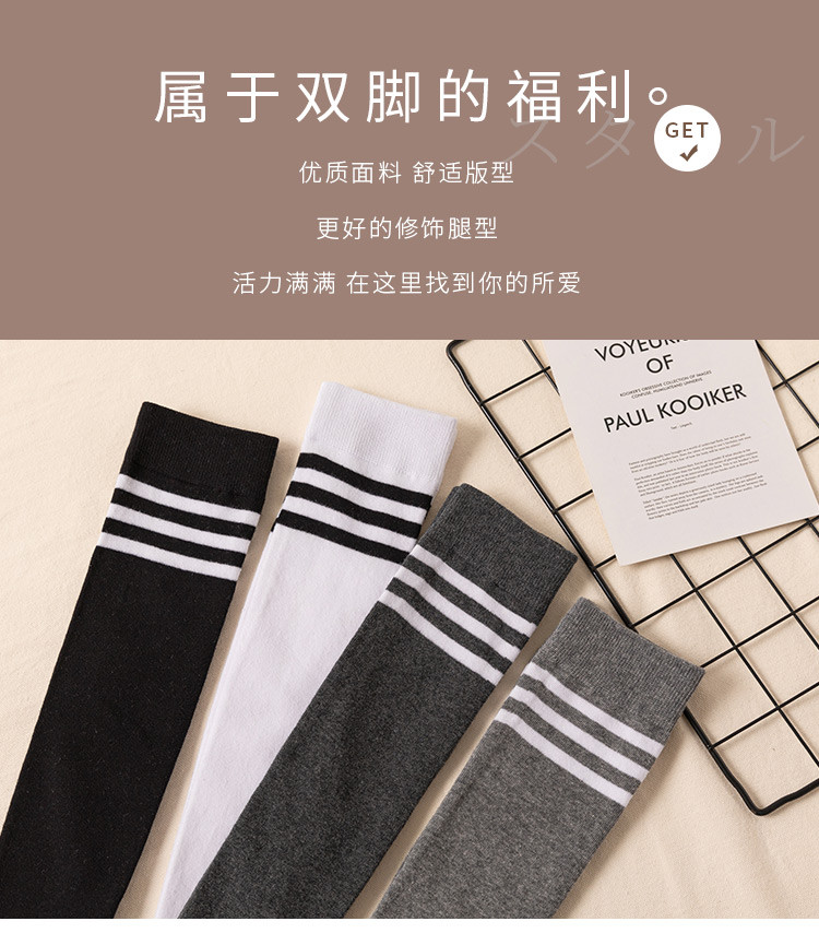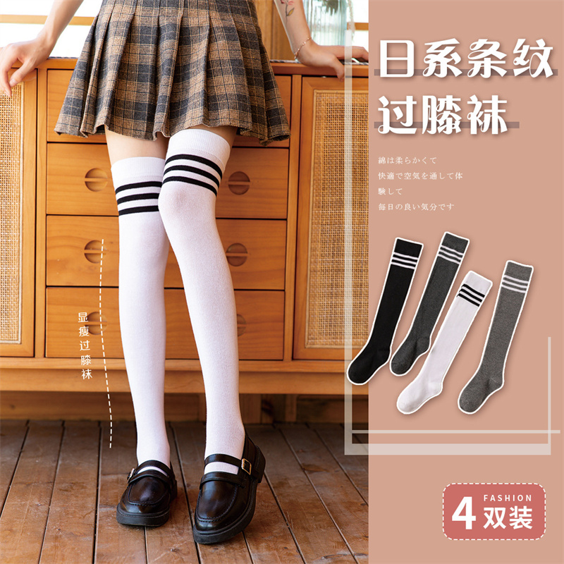 【学院风】4双装女士袜子女日系条纹jk过膝袜百搭显瘦长筒袜女