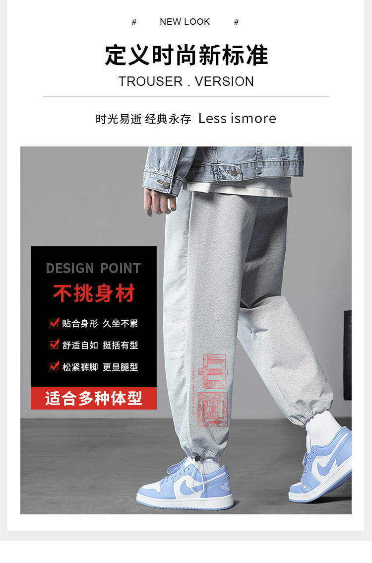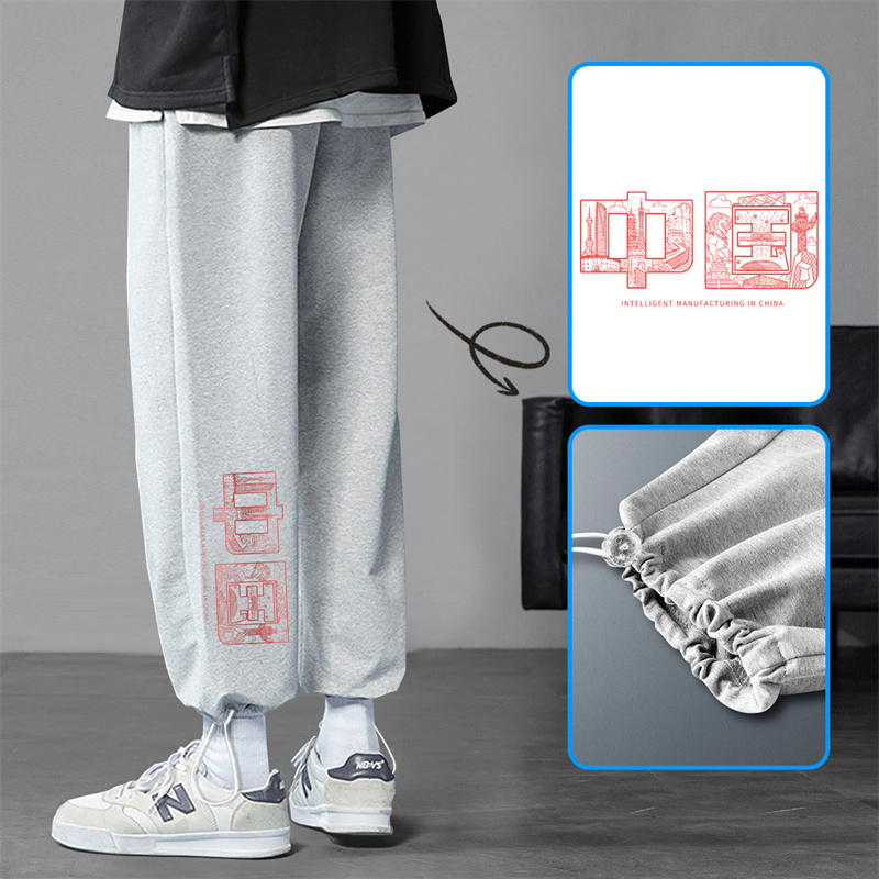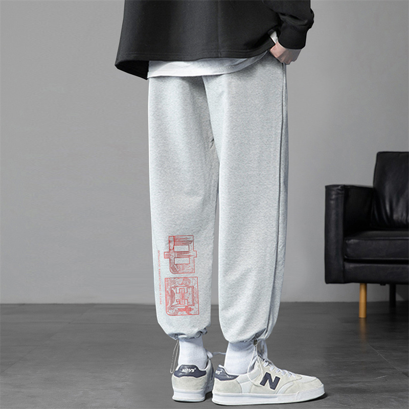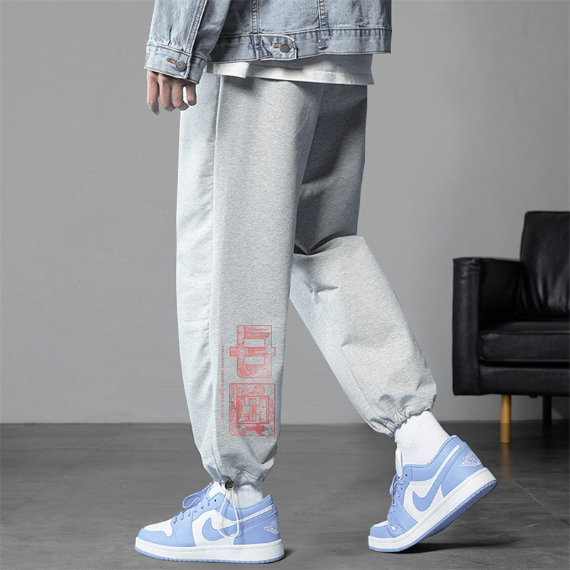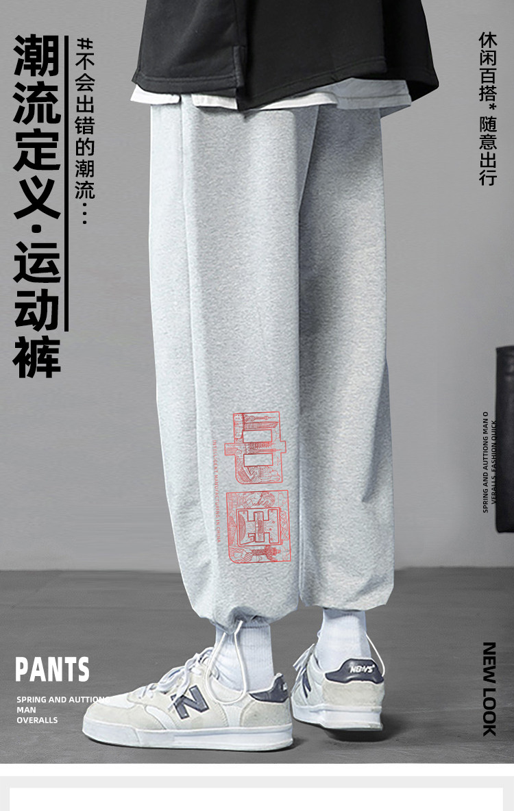 龙创潮牌3折印花潮流跑步系绳长裤休闲运动裤子男