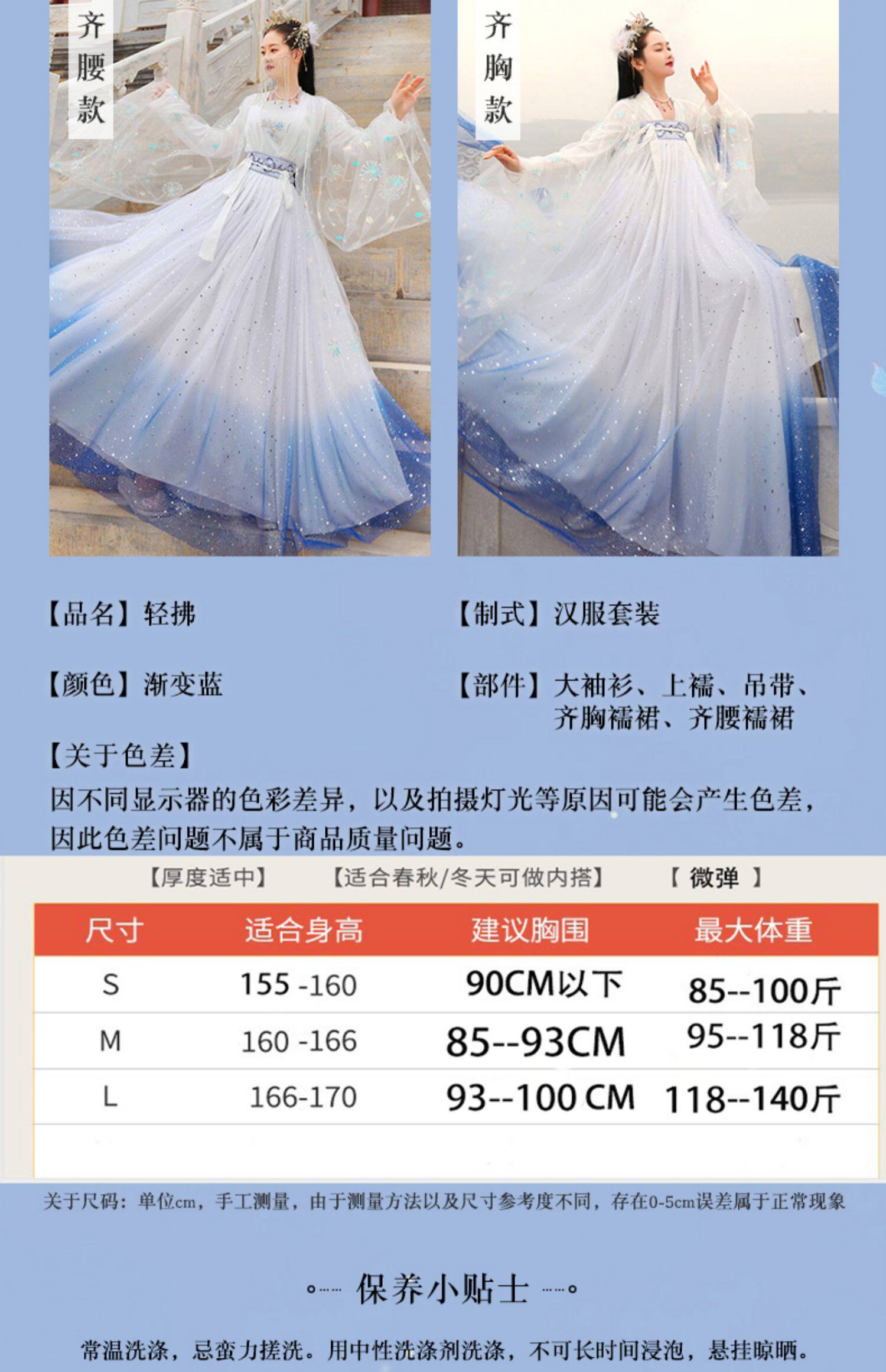 颜色分类: 齐胸【轻拂】大袖衫+上襦+3米摆裙子 齐胸【轻拂】大袖衫+上襦+6米摆裙子 齐腰【轻拂】大袖衫+上襦+吊带+3米摆裙子 齐腰【轻拂】大袖衫+上襦+吊带+6米摆裙子