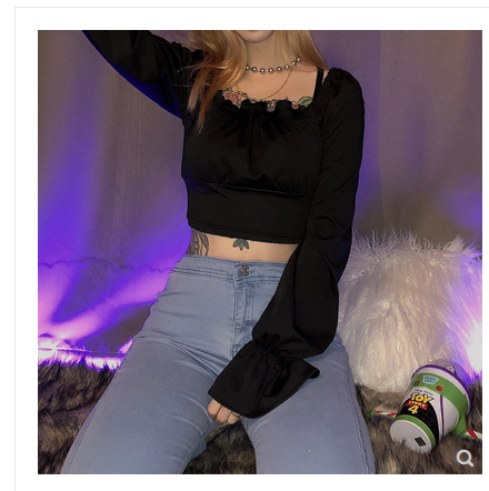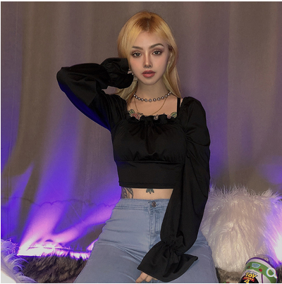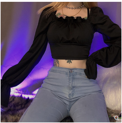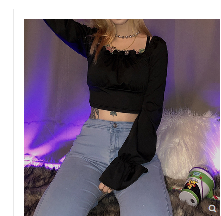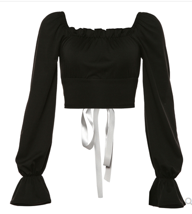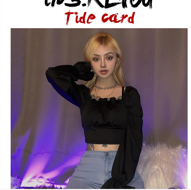 KLIOU 欧美复古方领上衣后背绑带设计感百搭气质显瘦短款t恤女 秋
