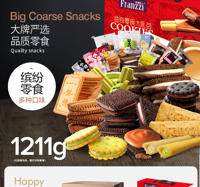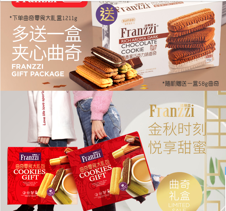 法丽兹 网红零食曲奇夹心饼干好吃送女友推荐零食大礼包小吃组合