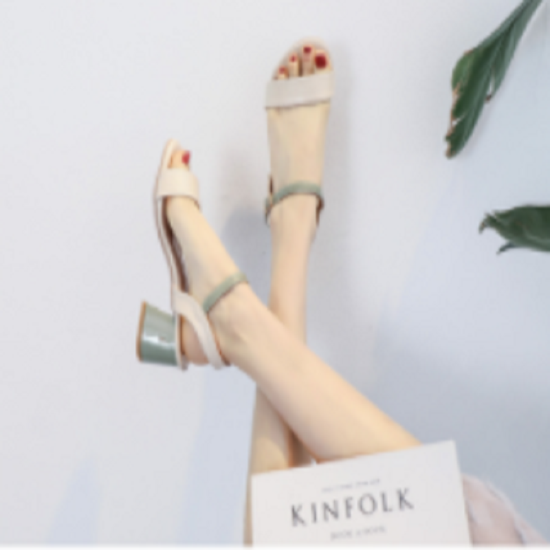凉鞋女夏2021新款韩版百搭中跟粗跟一字扣带仙女风罗马高跟鞋女鞋