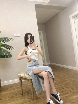 高腰侧开叉牛仔半身裙女夏季2021新款显瘦a字辣妹包臀长裙子ins潮