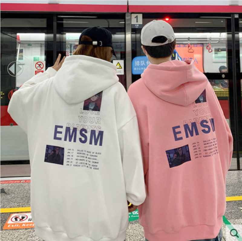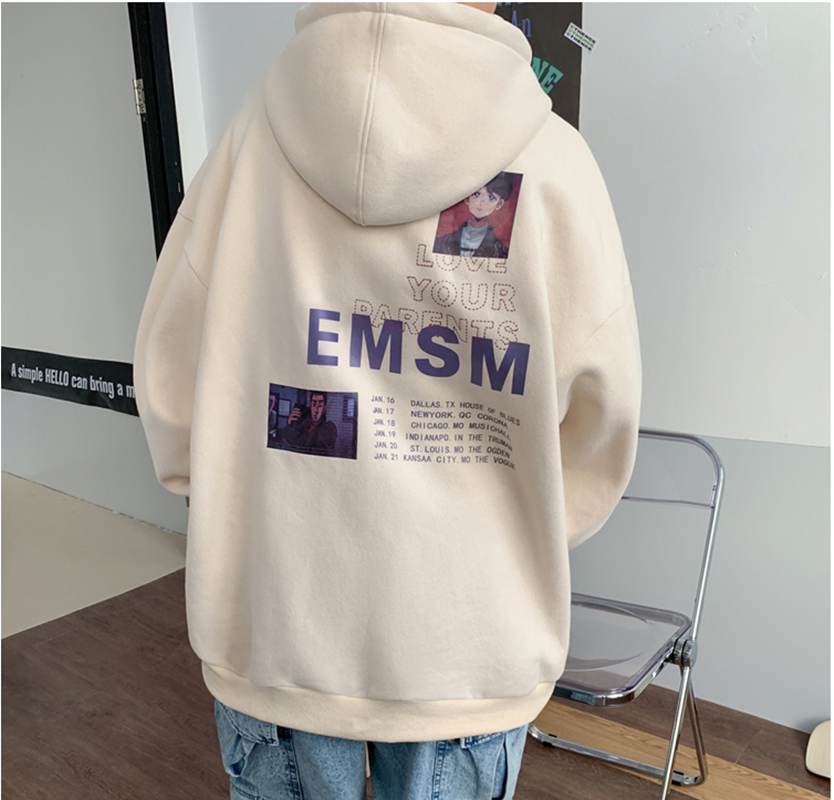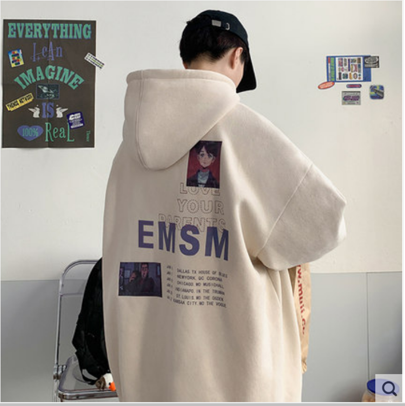 2021春装加绒连帽卫衣男韩版潮流宽松外套卡通动漫印花ins帽衫潮