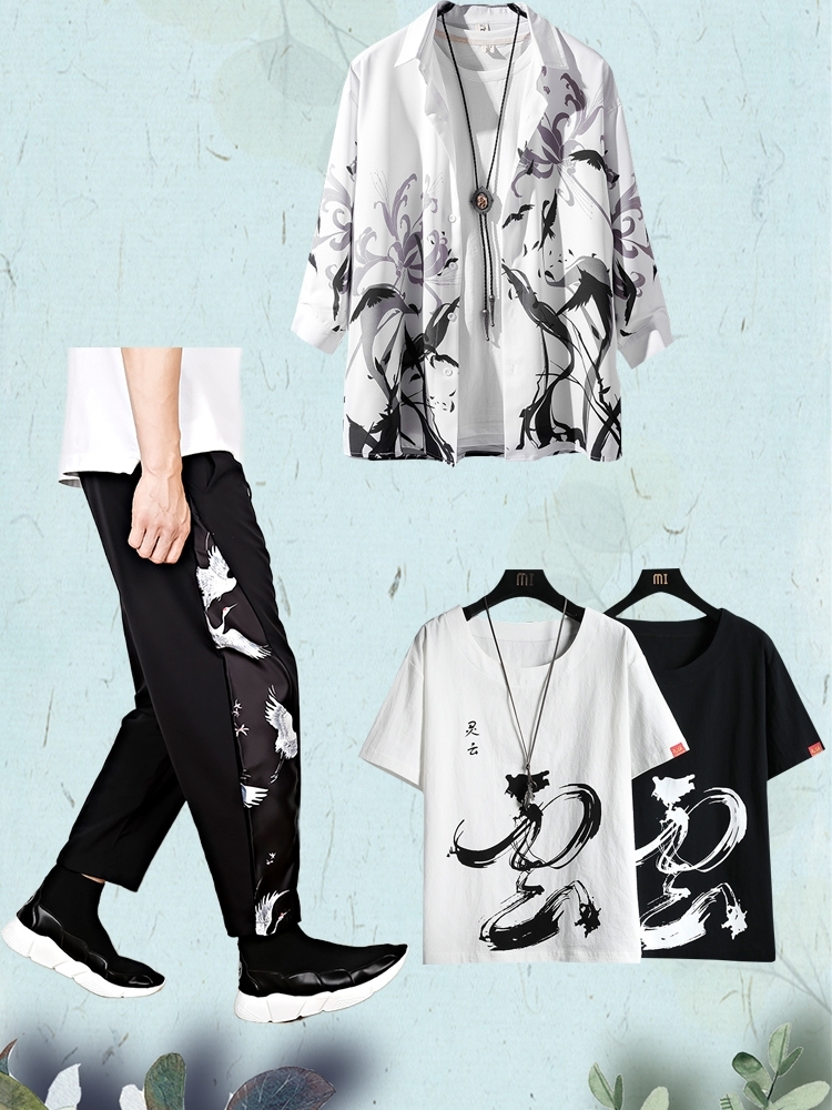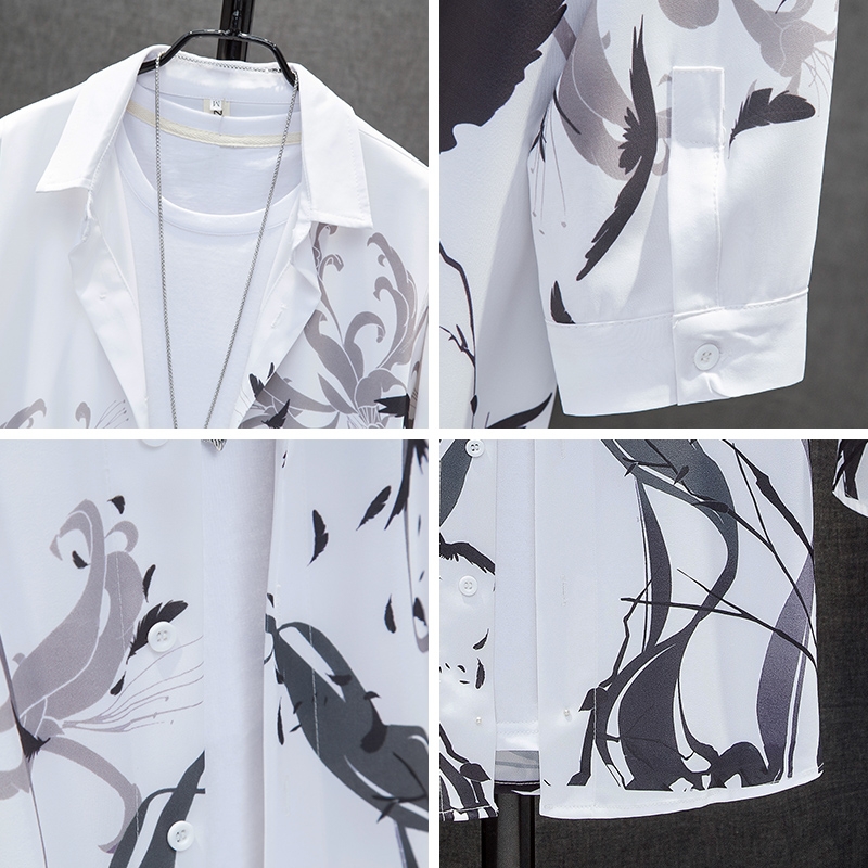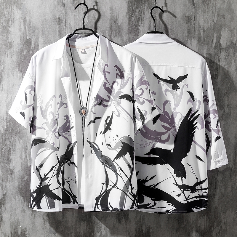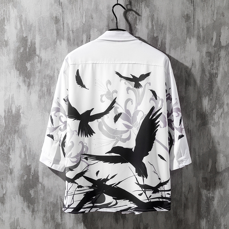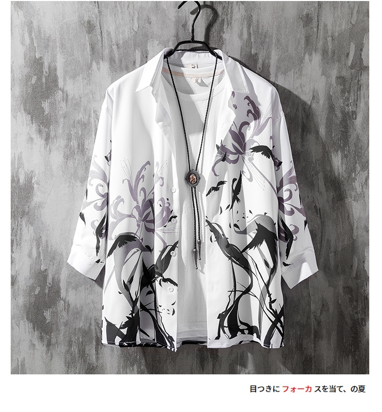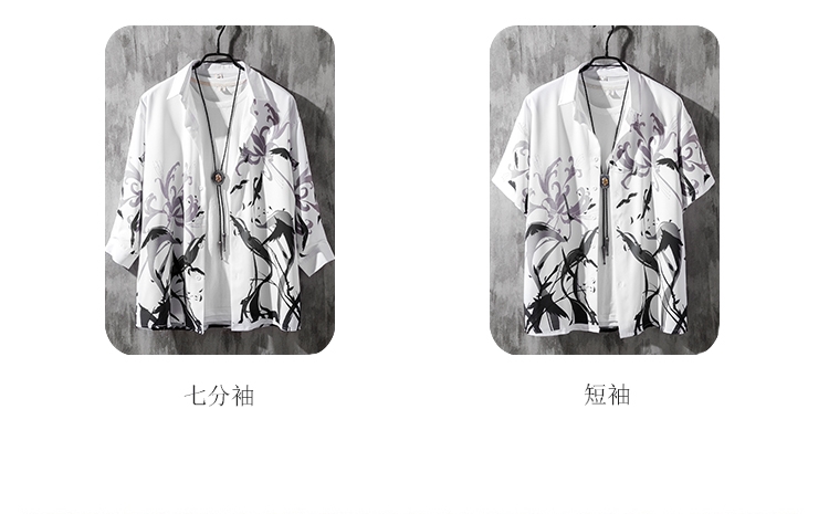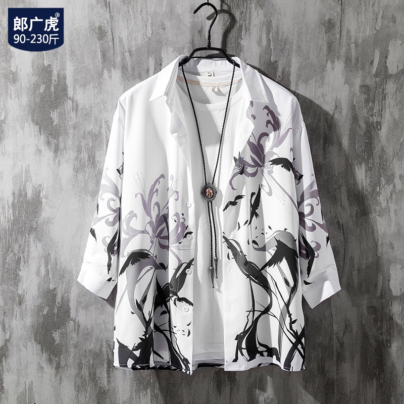 夏季七分袖衬衫男潮短袖宽松古风长袖衬衣服外套男装大码胖子寸衫