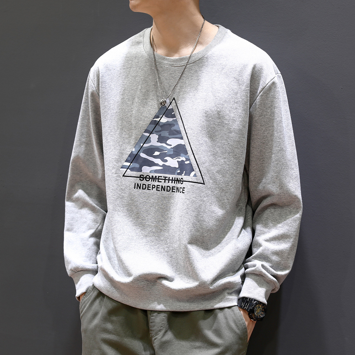 【热卖款推荐】春秋新款男上装套头圆领卫衣帅气男士时尚卫衣