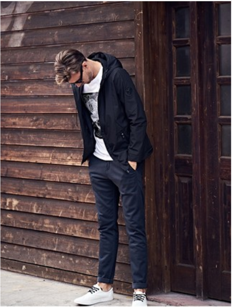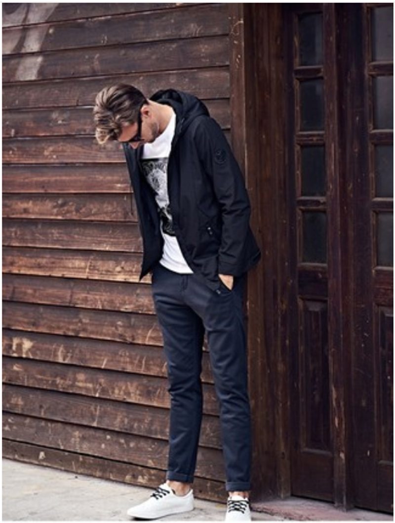 2021新款春季男士夹克潮流休闲连帽春秋款男装外套纯色春装上衣潮