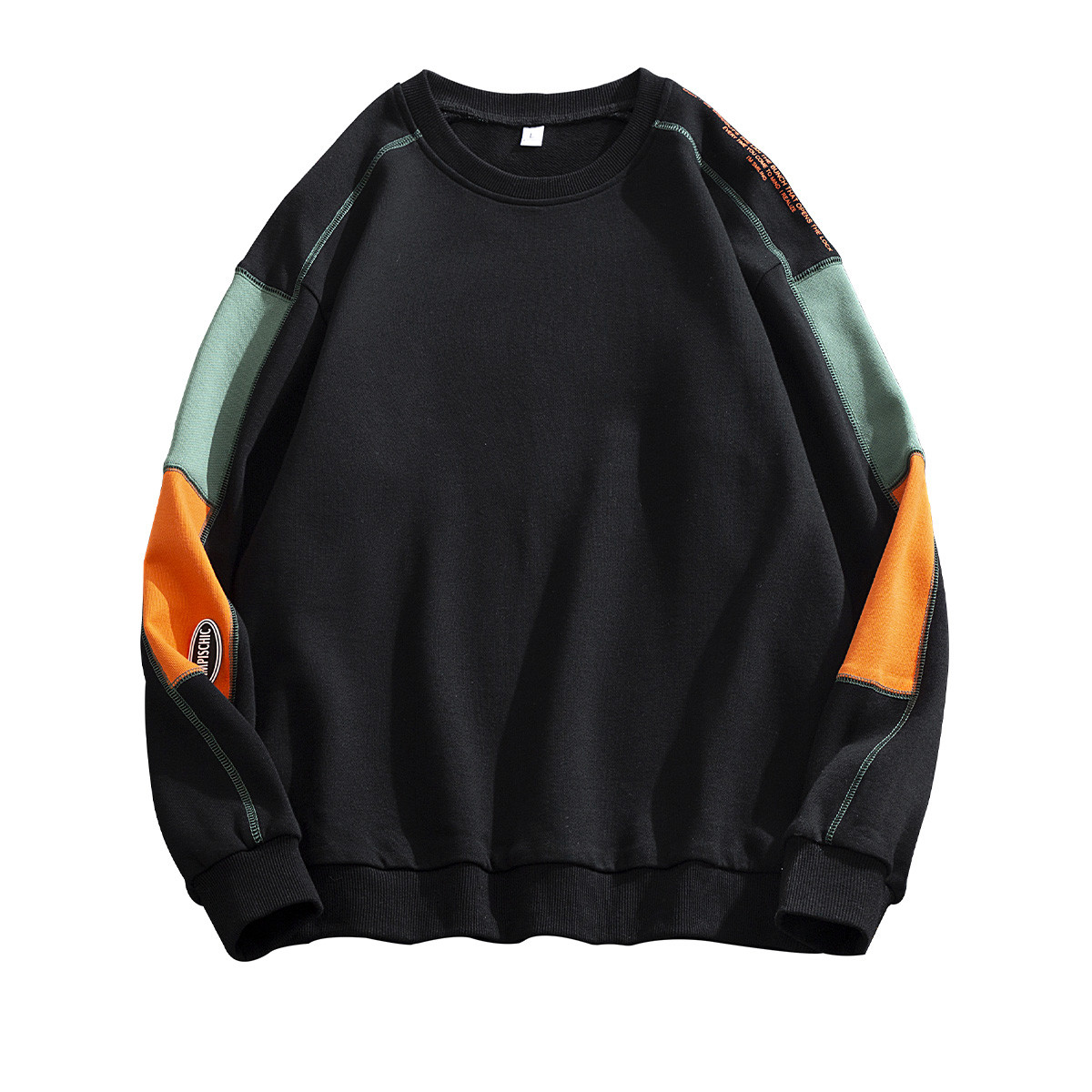 2021春季新款拼接撞色时尚休闲街头潮流圆领男士卫衣