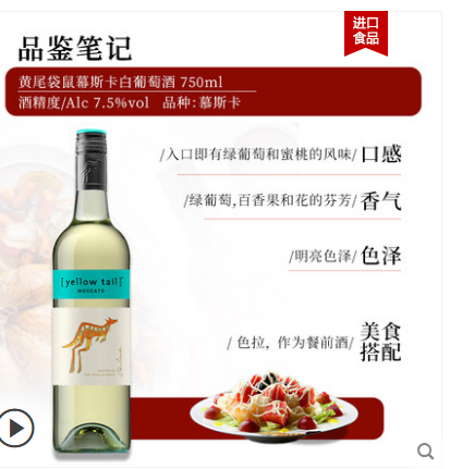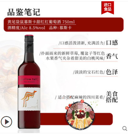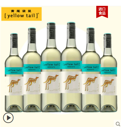澳洲进口黄尾袋鼠幕斯卡白甜红桃红葡萄酒750ml*6支装分享装