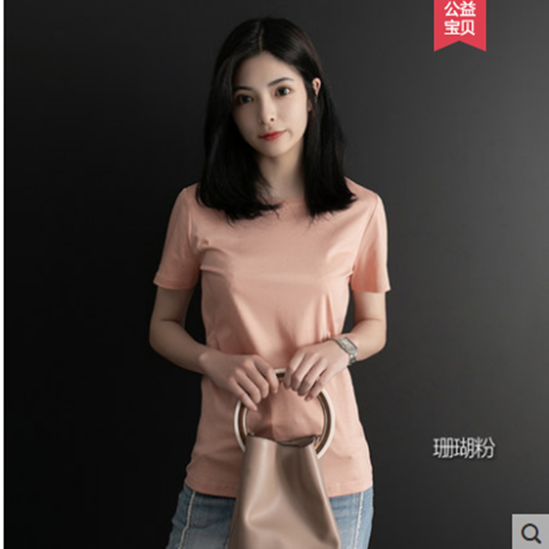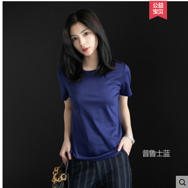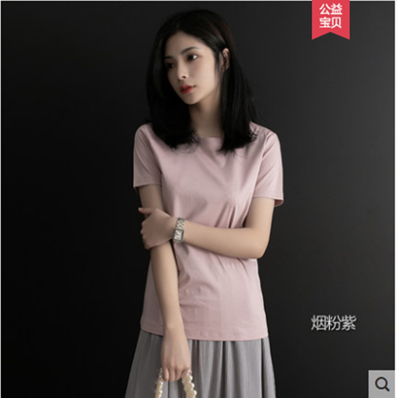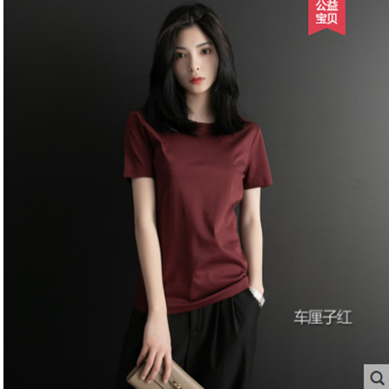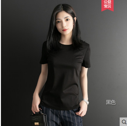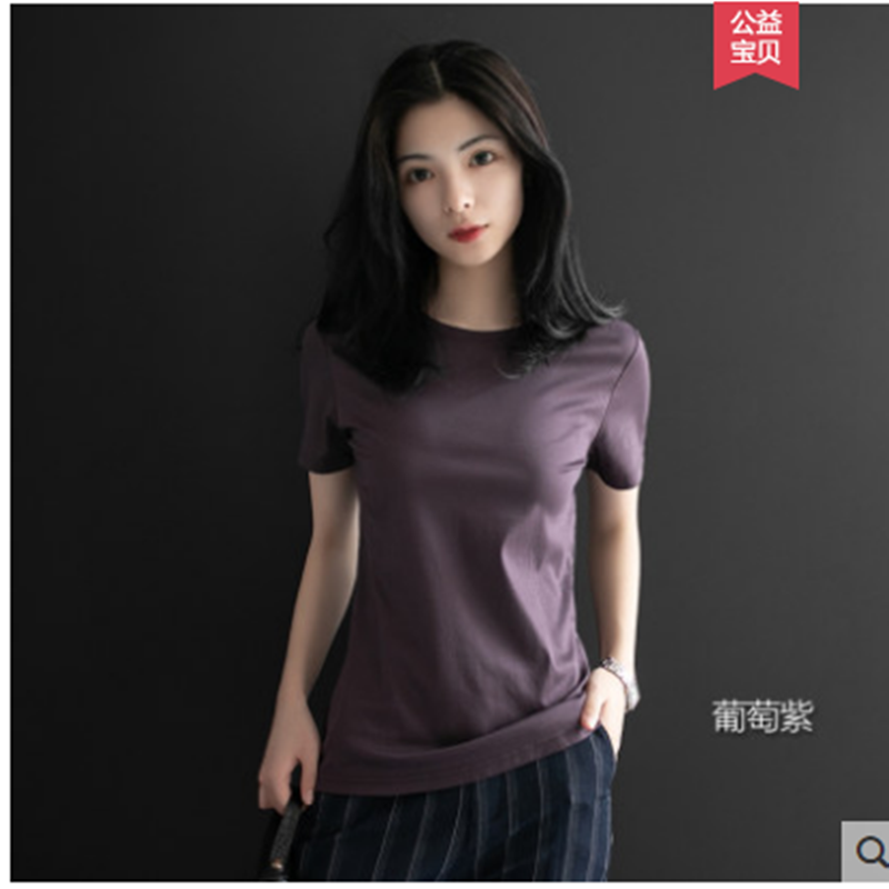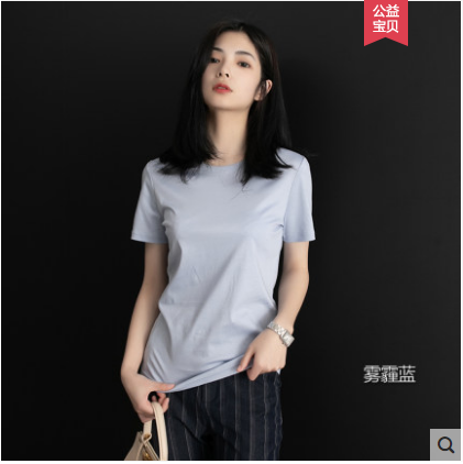 短袖t恤女宽松纯棉2021年新款夏季短款圆领半袖丝光棉白色上衣女