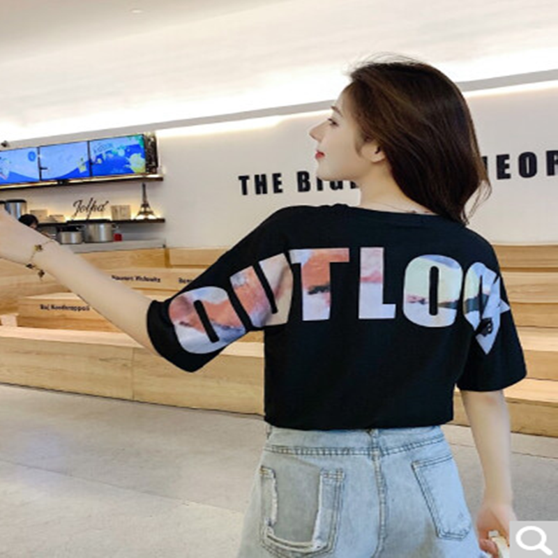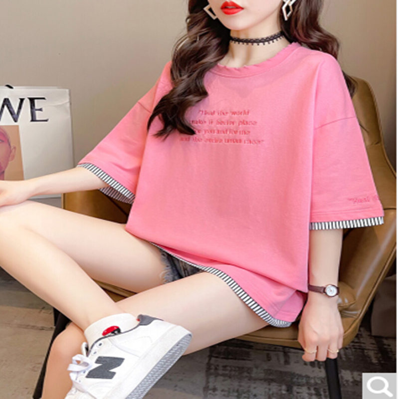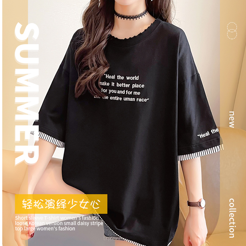 莎芡红色短袖t恤女夏2021年新款宽松设计感洋气字母印花打底衫棉体