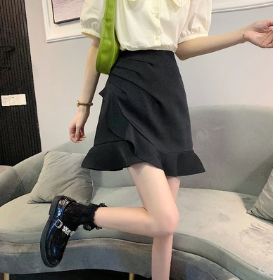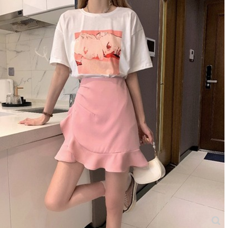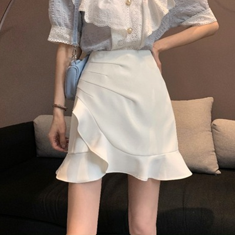 不规则白色半身裙女夏季荷叶边a字包臀短裙粉色高腰裙子鱼尾裙夏
