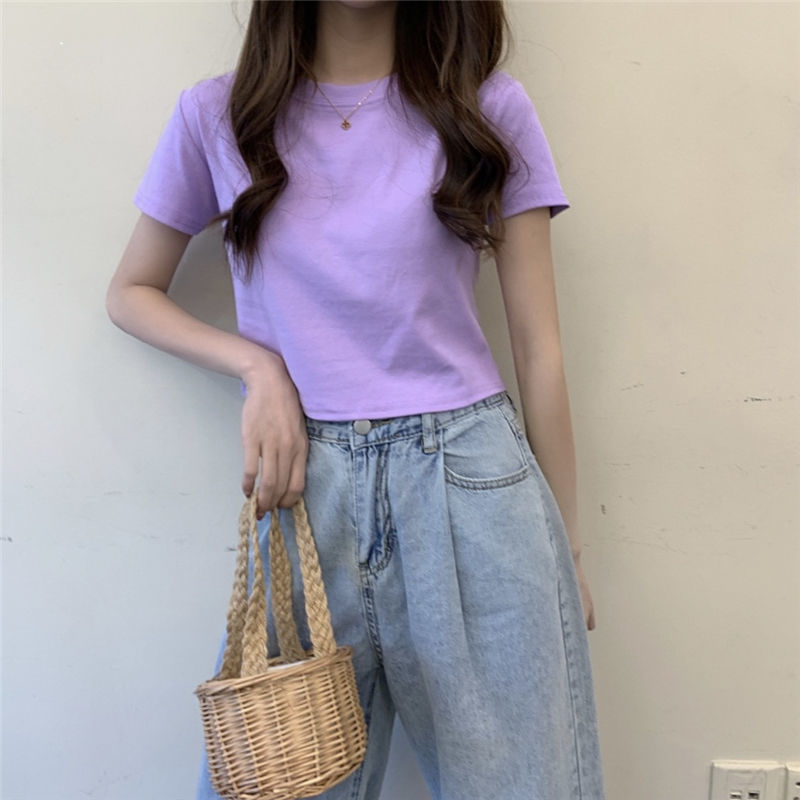 质量好白塔 实惠100%纯棉白色短袖t恤女夏2021新款宽松韩版学生百搭内搭打底衫潮