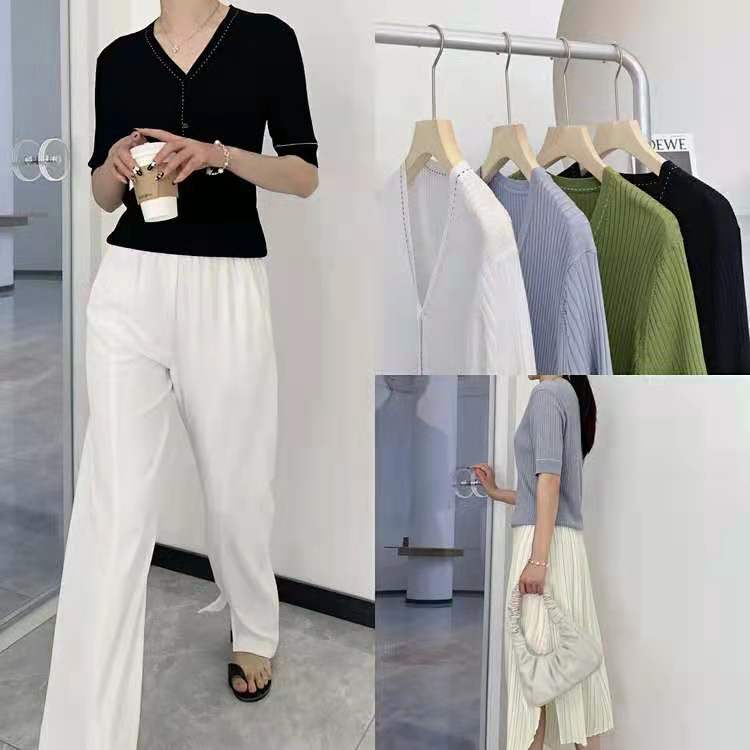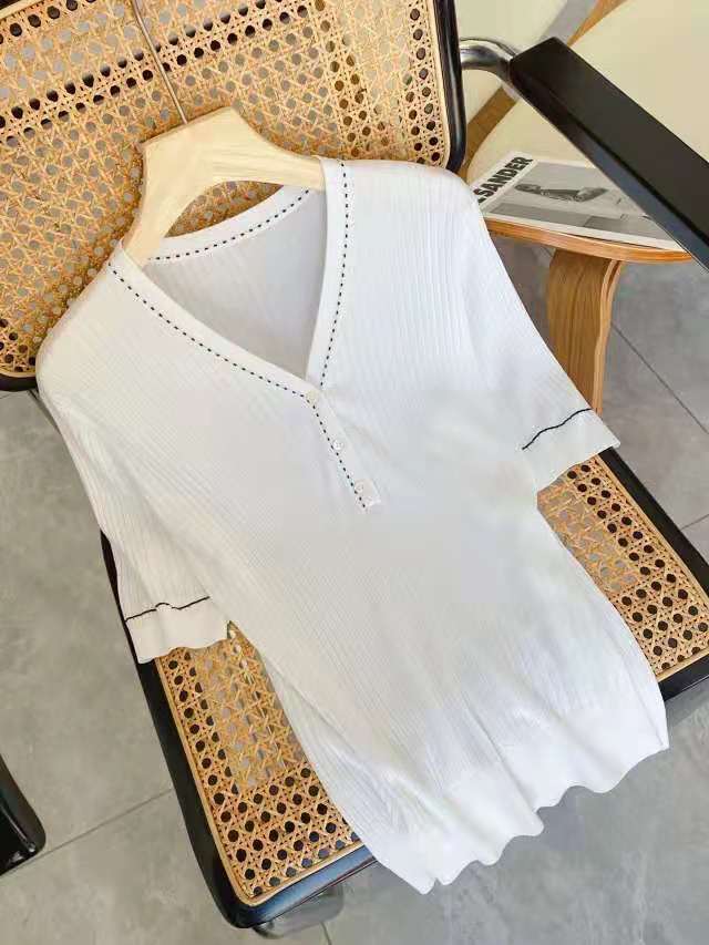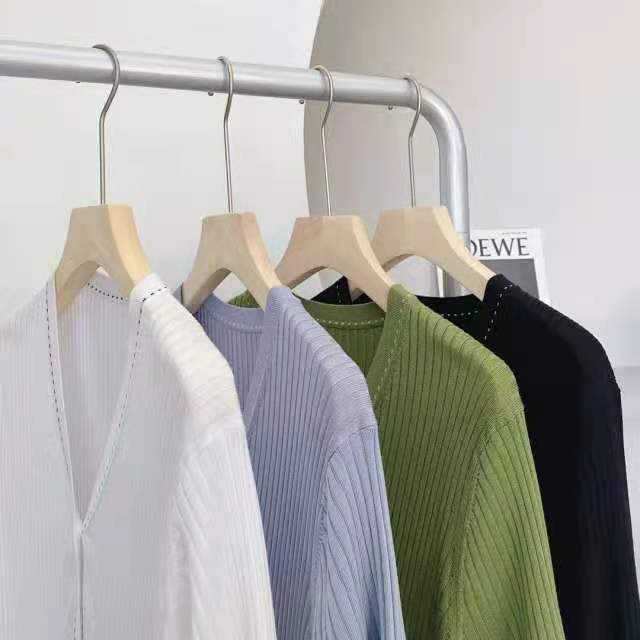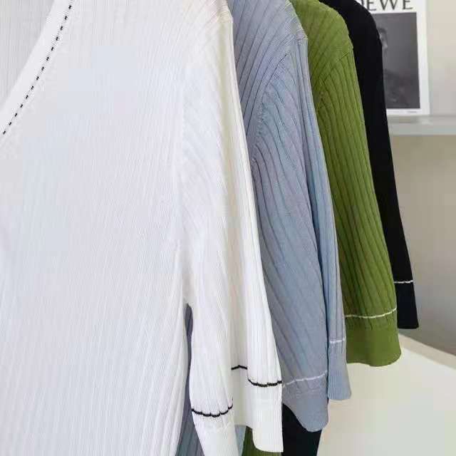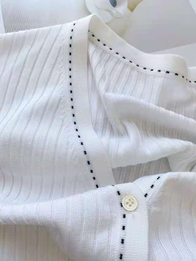 设计师品牌法式V领 桑蚕丝修饰脖颈线条勾勒迷人锁骨领口撞色针织有层次针织衫开衫