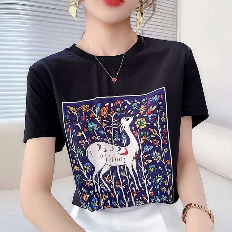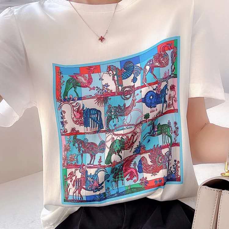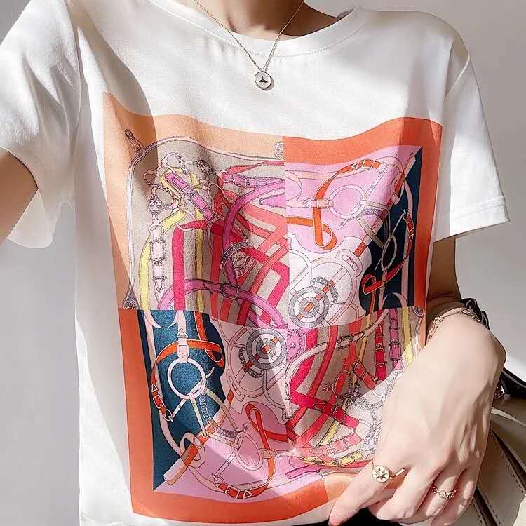 首页> 男装/ 女装/ 内衣> 女装> T恤> 【高端缎面桑蚕丝手感短袖t】日系宽松显瘦上衣 ,优雅法式印花尽显气质!