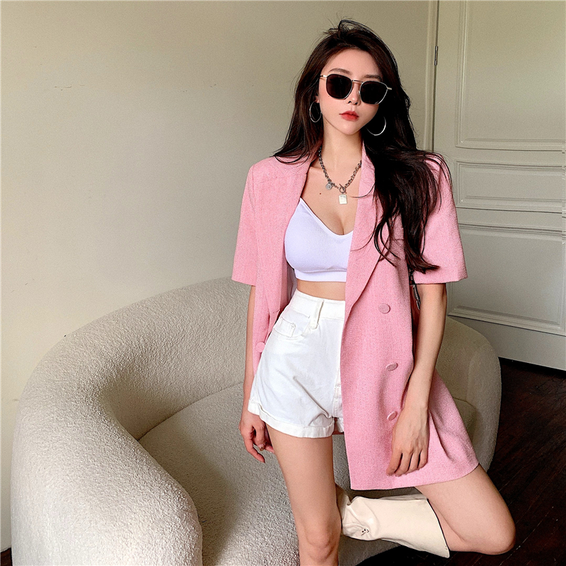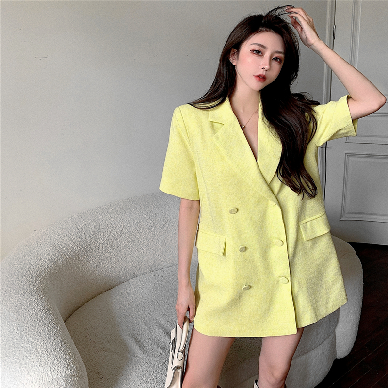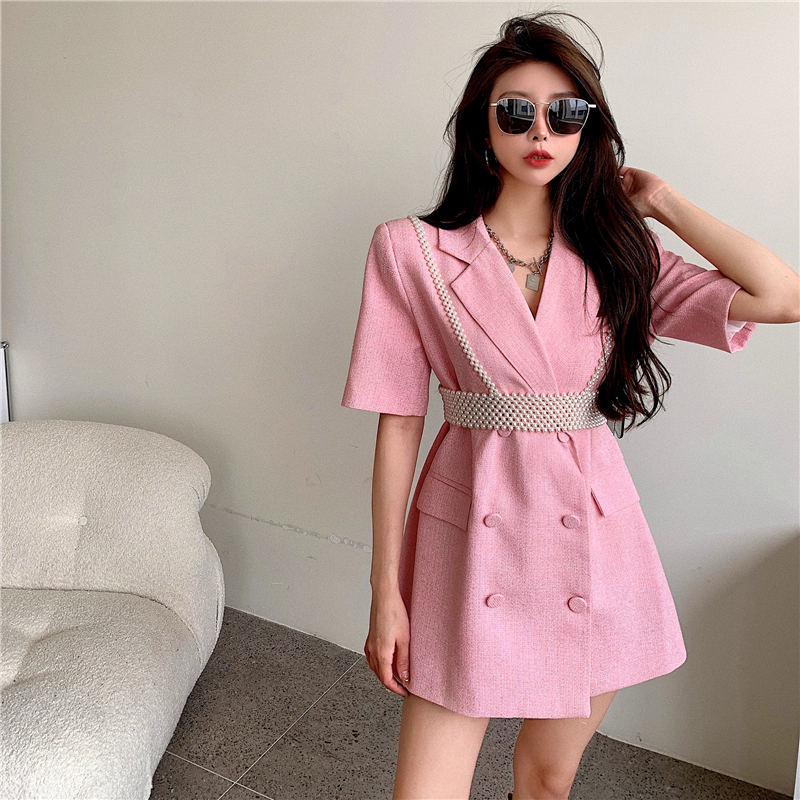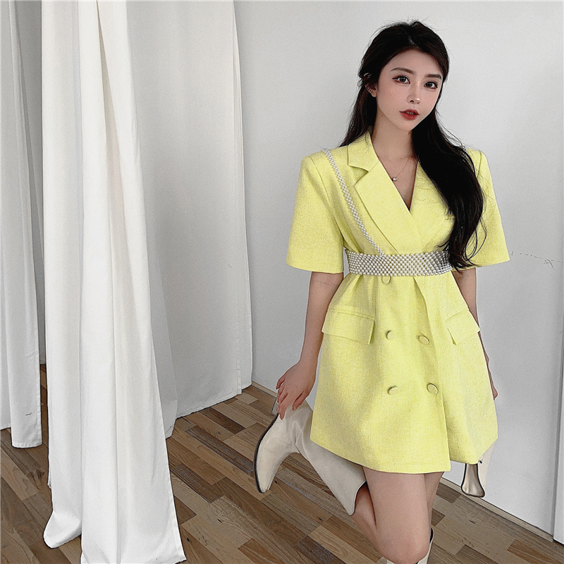 颜色分类: 粉色西装 黄色西装 珍珠吊带