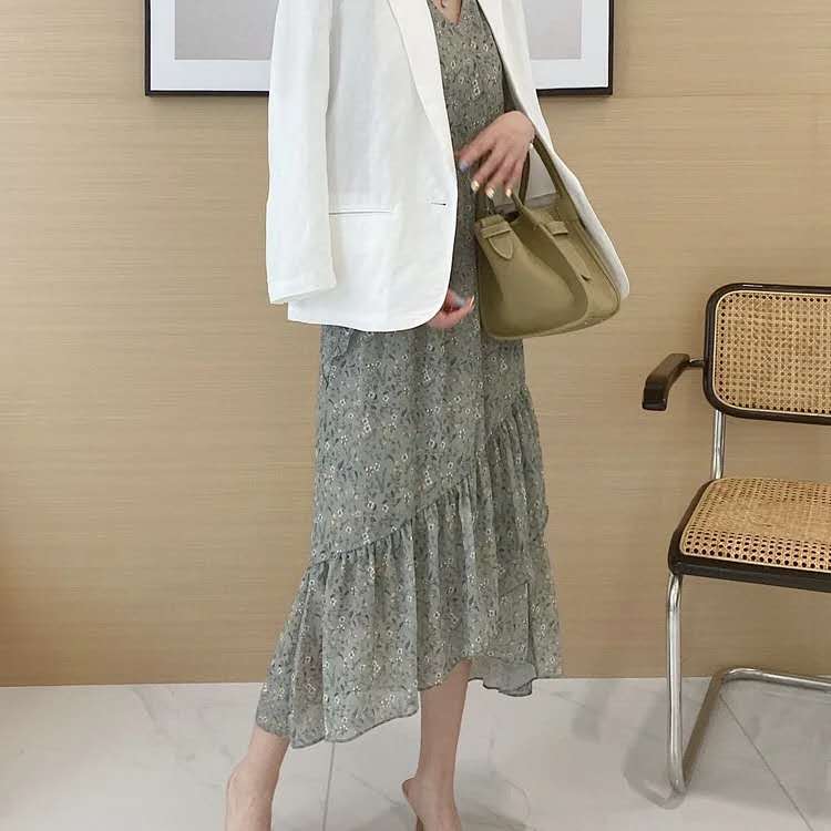 下摆多层波浪 灵动飘逸简单的泡泡袖加入甜美优雅夏至了在这个裙摆飘飘的季节集青春 甜美 性感于一身绿色/米色S 衣长117 肩宽37 胸围89 腰围75 袖长29.5M衣长117.5 肩宽38 胸围93 腰围79 袖长30.5