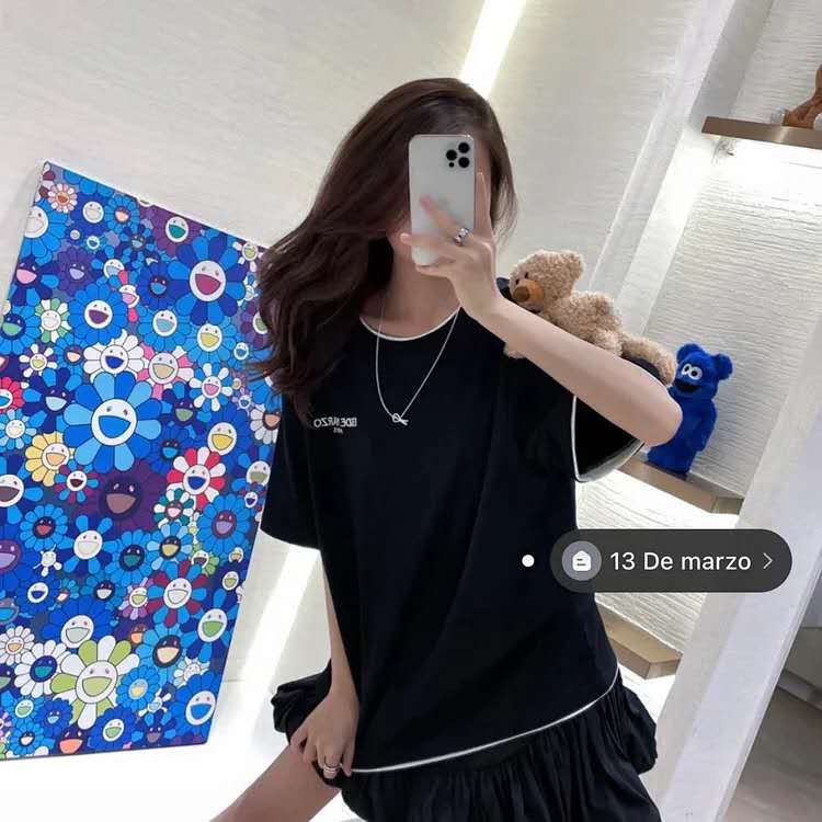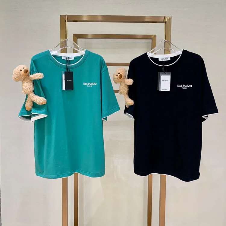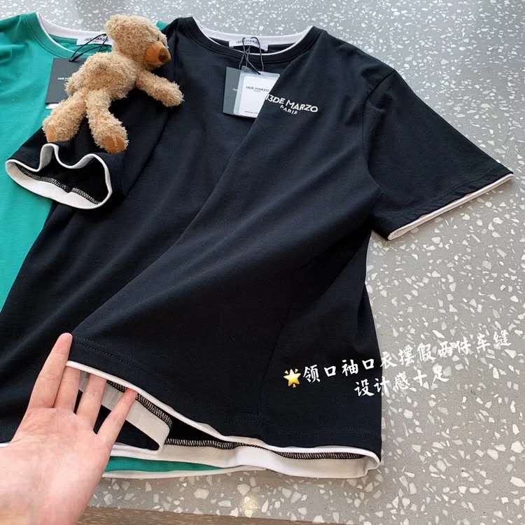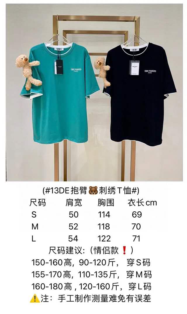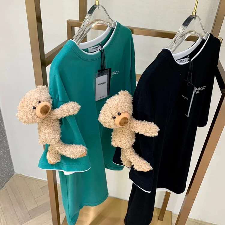 13DE假两件抱臂熊公仔T恤圆领落肩T