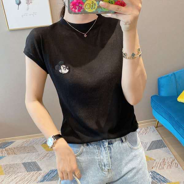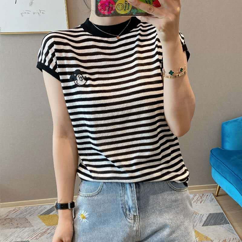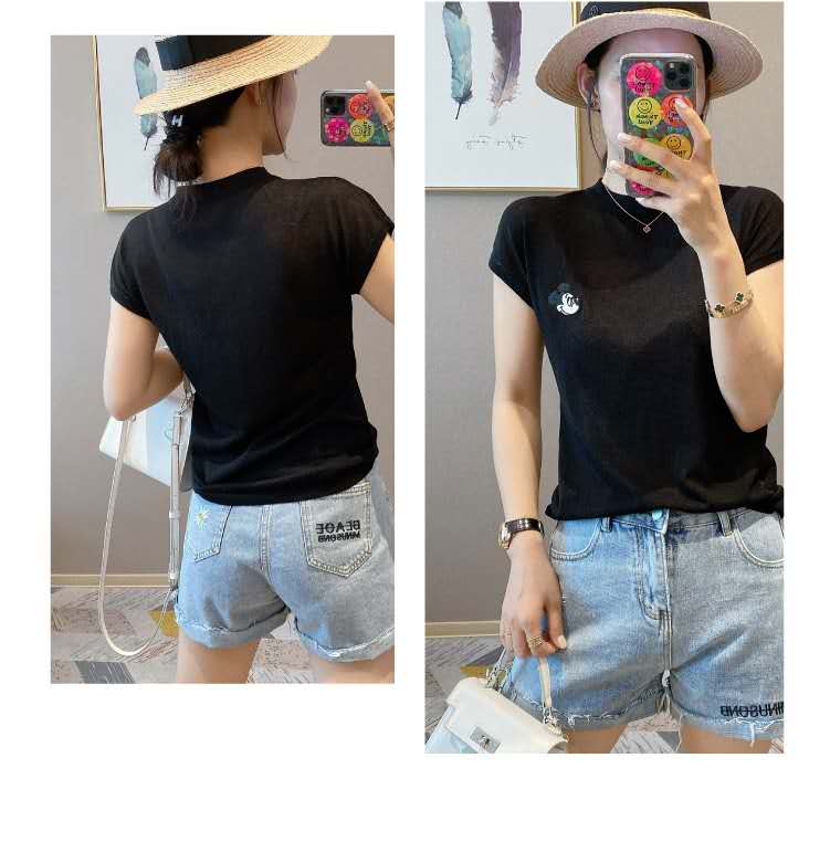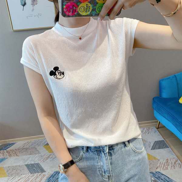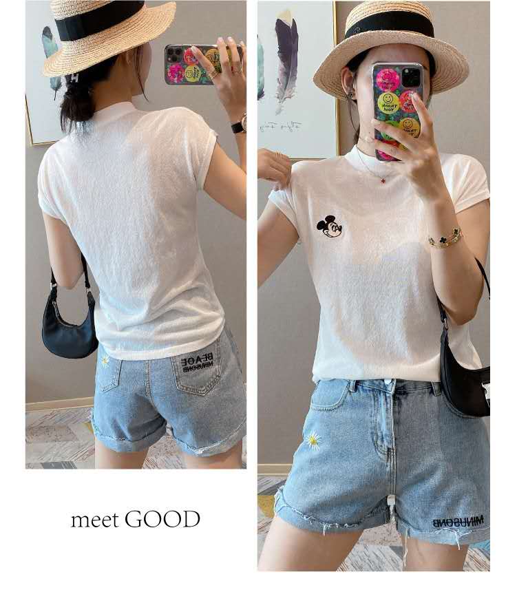 欧洲站2021夏季宽松米奇刺绣短袖t恤女纯棉内搭洋气薄款半袖上衣