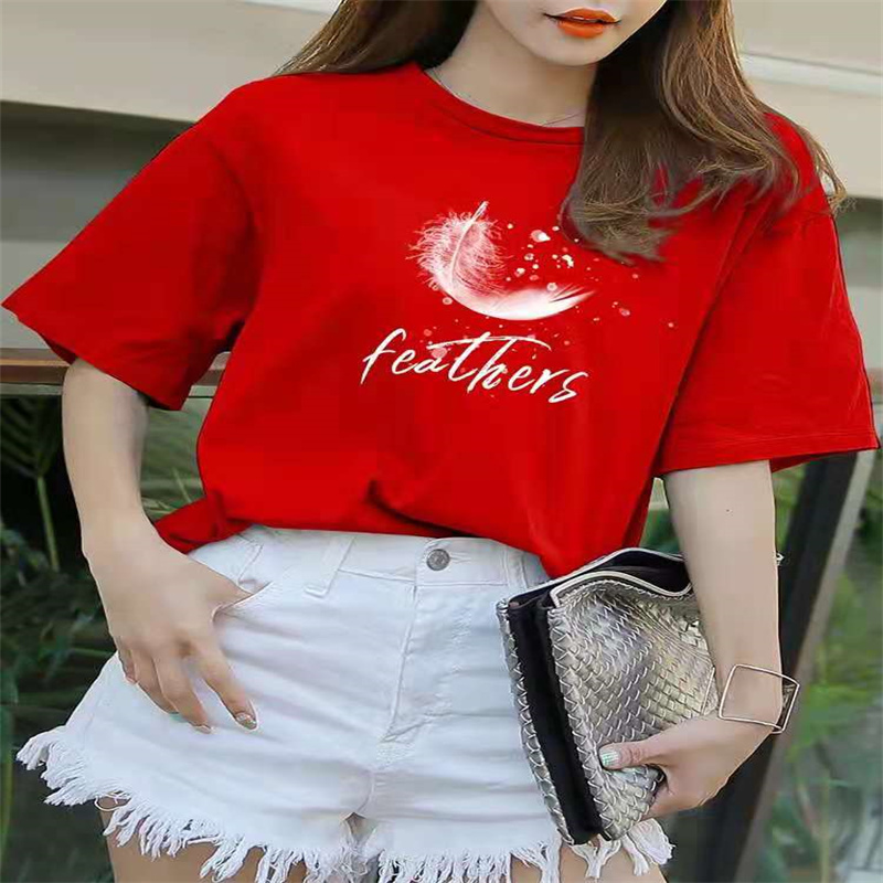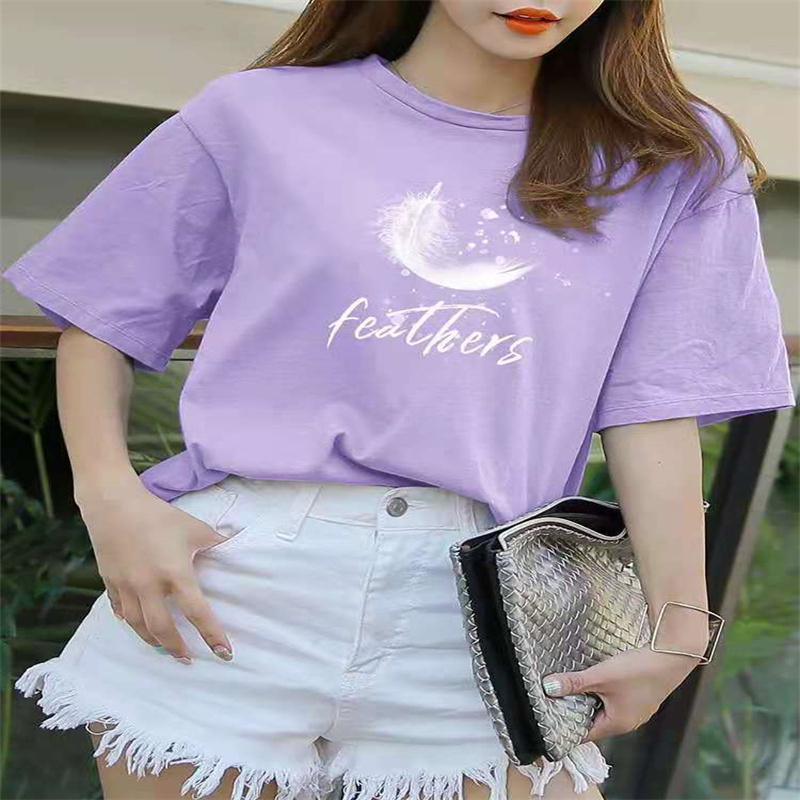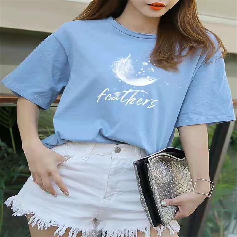 纯棉短袖t恤女2021年新款半袖体恤韩版宽松印花女t桖夏季上衣女装