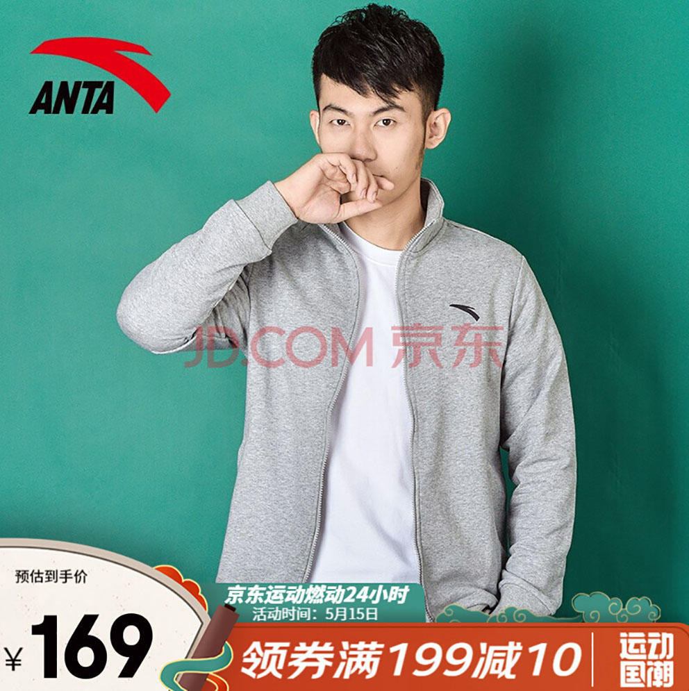 商品名称:安踏外套男 2021春季新品男士防风保暖舒适夹克时尚速干立领男上衣官方旗舰 (针织)BC17灰花灰 XL/男180cm