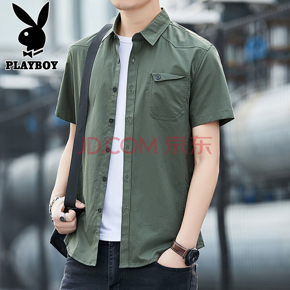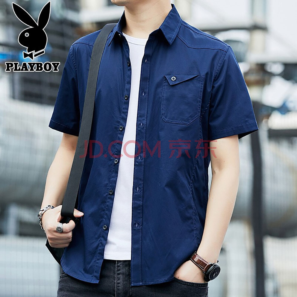 商品名称:花花公子衬衫男短袖2021夏季潮韩版新品休闲男士衬衣青年学生宽松商务上衣薄款大码外套男装 酒红 M