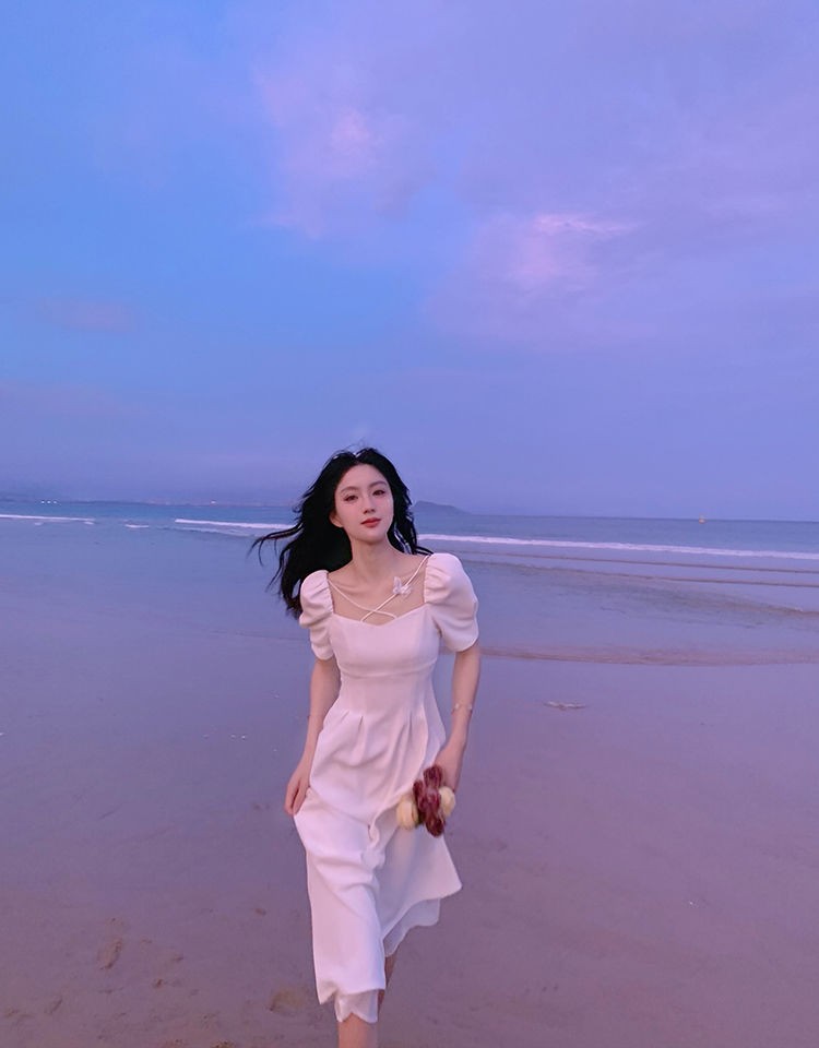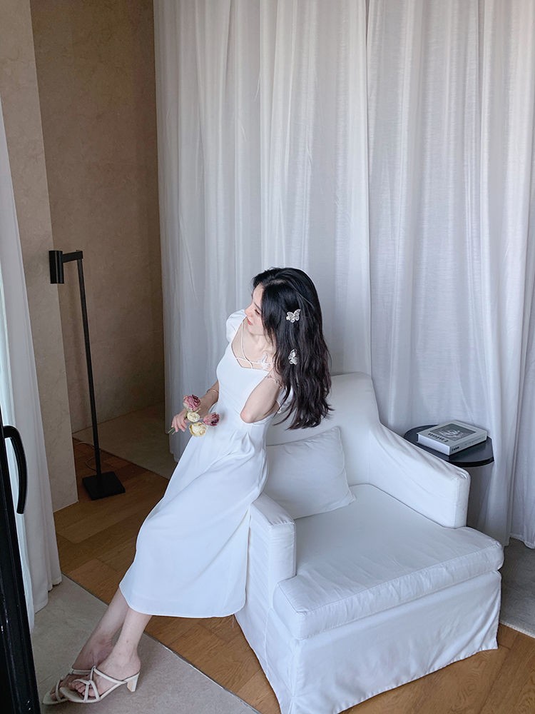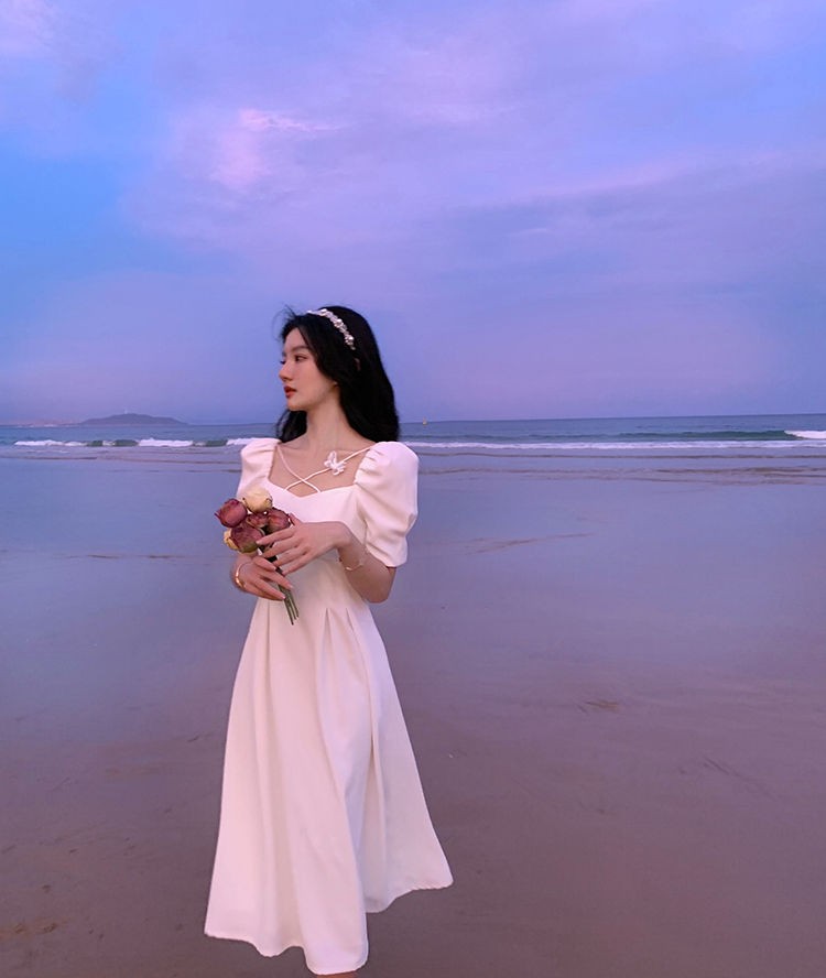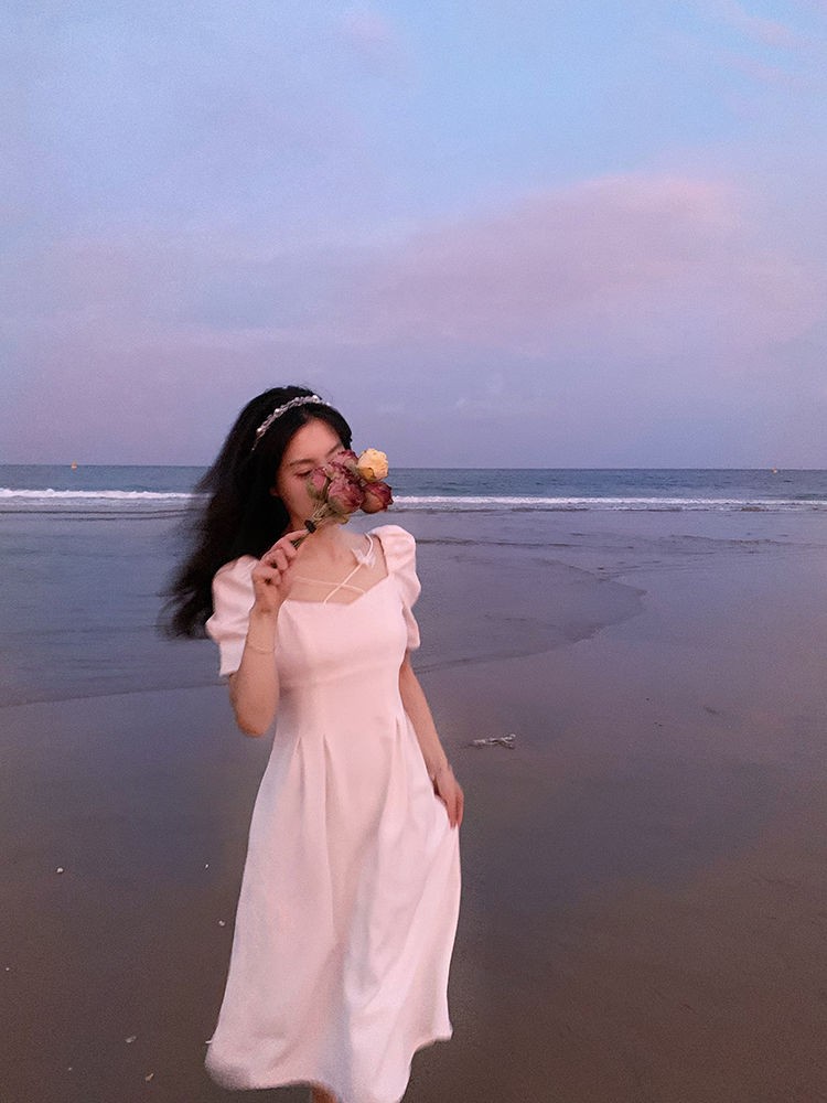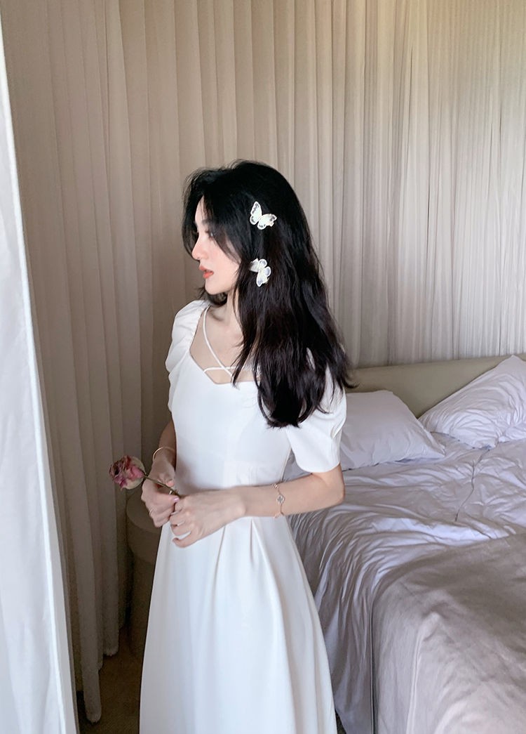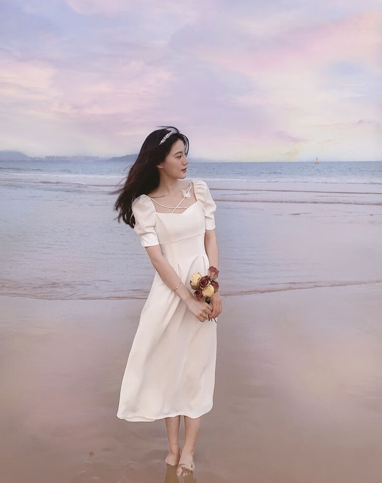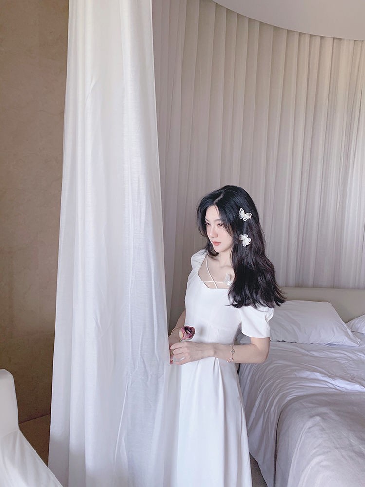 商品名称:YUDA春2021新款女法式白色初恋长裙仙女超仙森系泡泡袖方领气质连衣裙 白色 M(90-105斤)