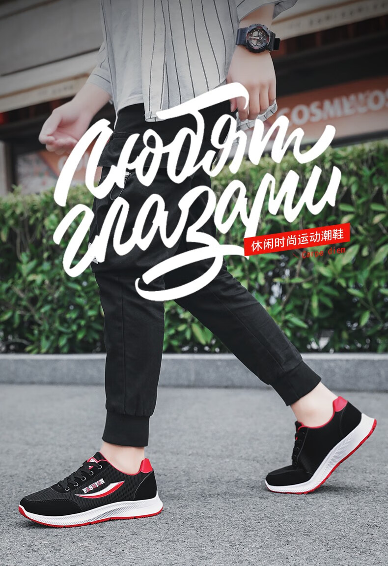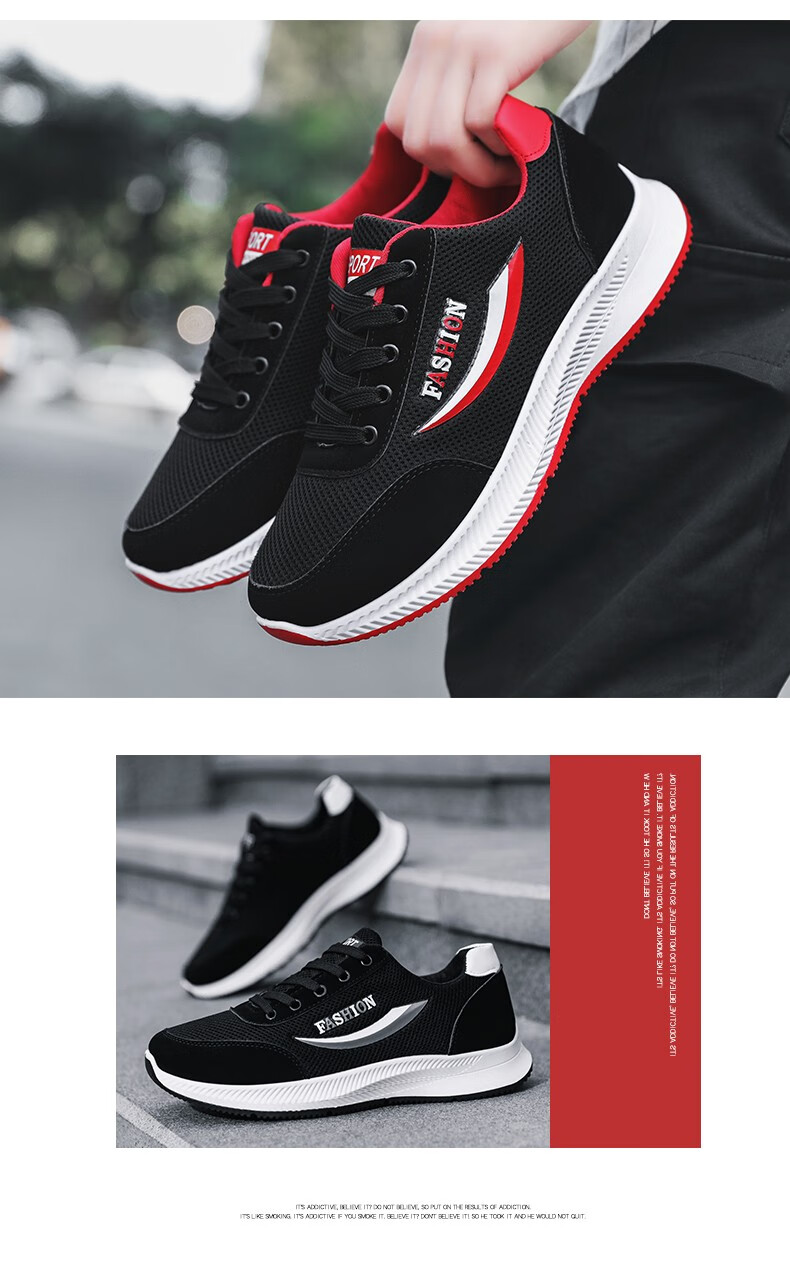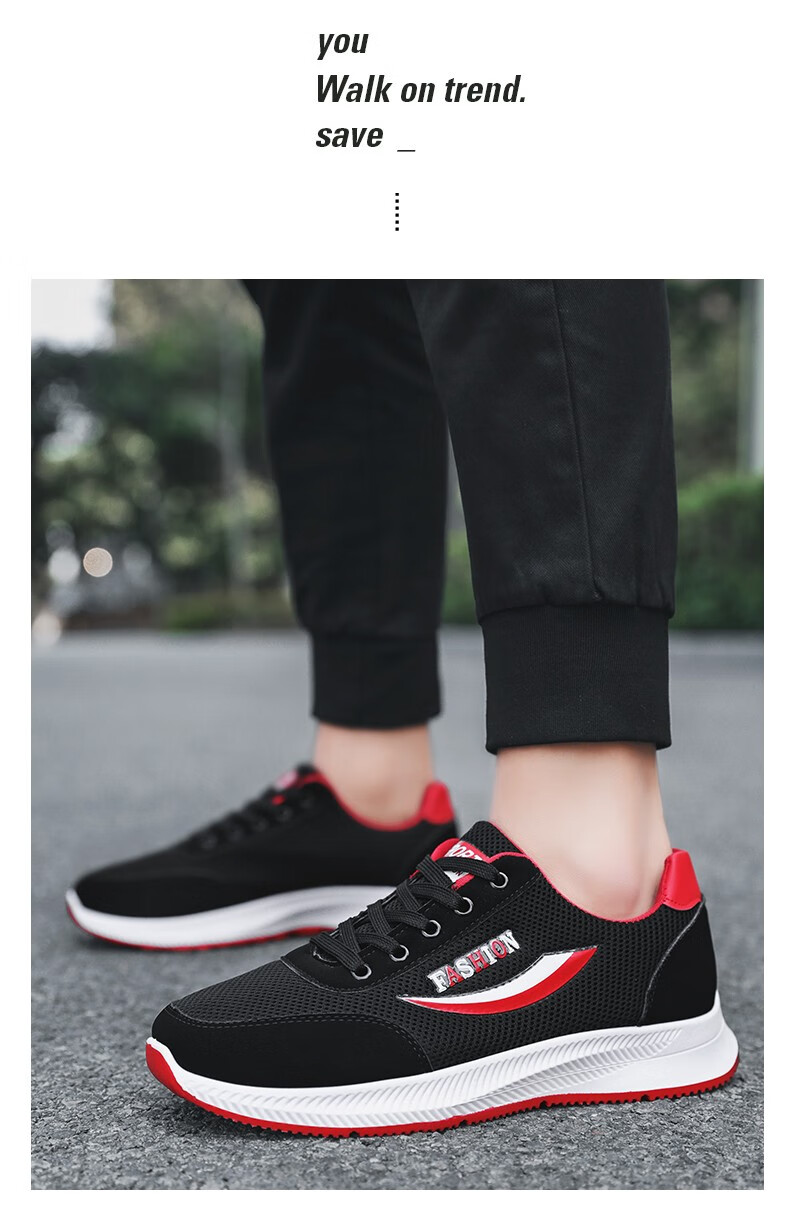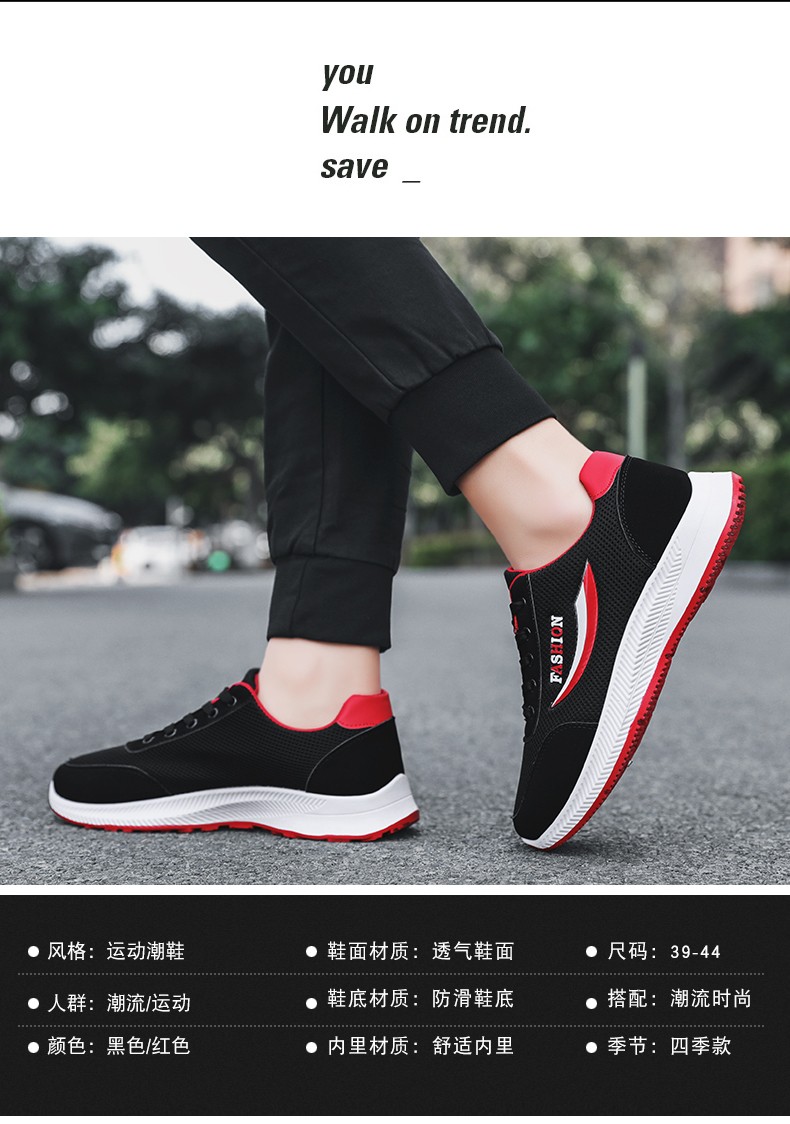 商品名称:迪特丹 鞋子男鞋2021春夏季新款休闲鞋靴男韩版潮流网面运动休闲男鞋百搭跑步鞋男老爹鞋男潮鞋板鞋男 YJ-7122黑红色 41