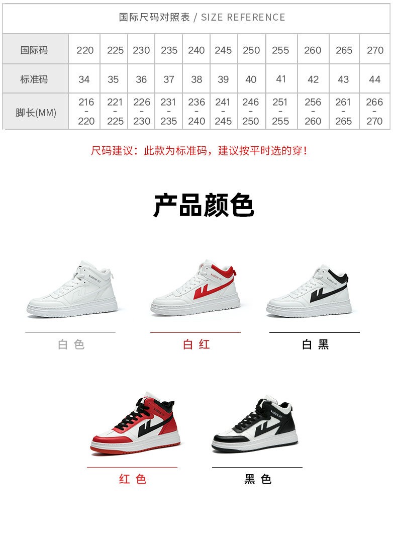 颜色分类: 白色高帮 白黑高帮 白红高帮 黑色高帮 无logo白黑高帮 无logo白黄高帮 5001白炫彩 5001白黑 5002白黑 5002白黄 白黑中帮 白色中帮 红色高帮 小logo白灰高帮 白色带透气孔低帮 白色低帮 2057黑蓝低帮 567白黑低帮 2112白灰低帮 2112黑色低帮