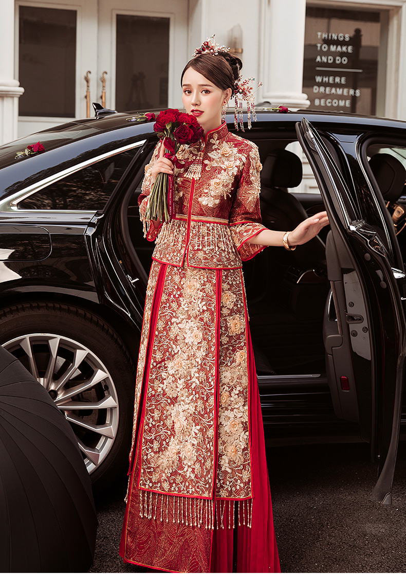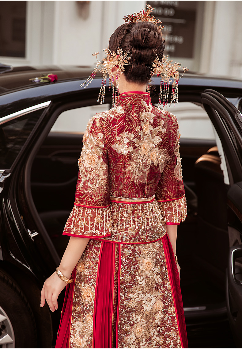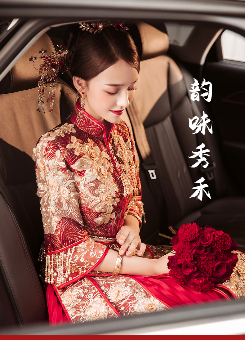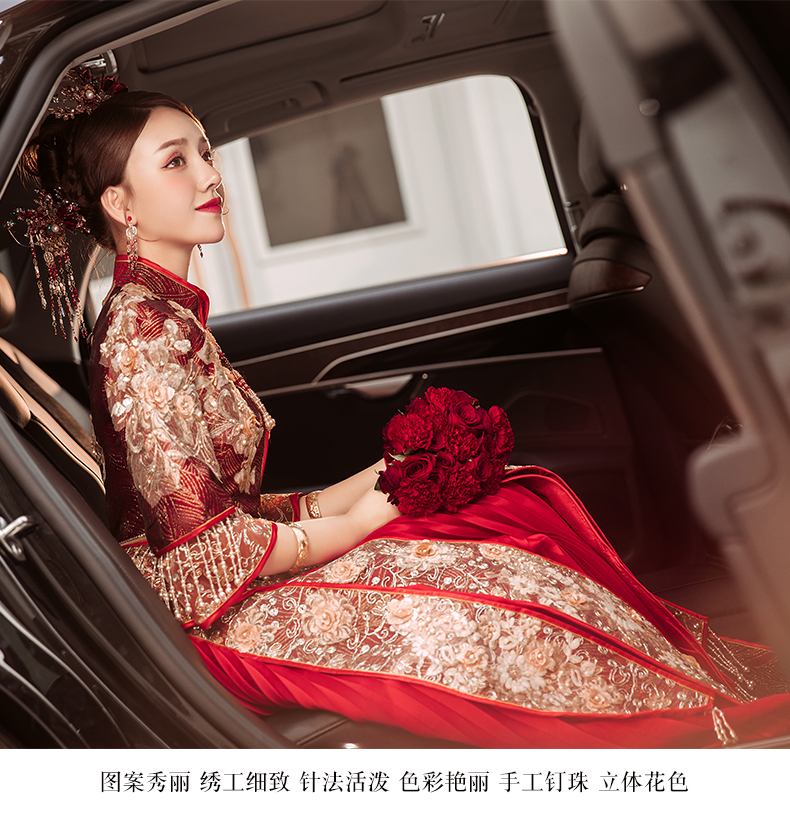 商品名称:卡帝乐鳄鱼旗舰官方店 秀禾服2021新款新娘结婚中式婚纱礼服龙凤褂敬酒服出阁服嫁衣和服 黄色 S