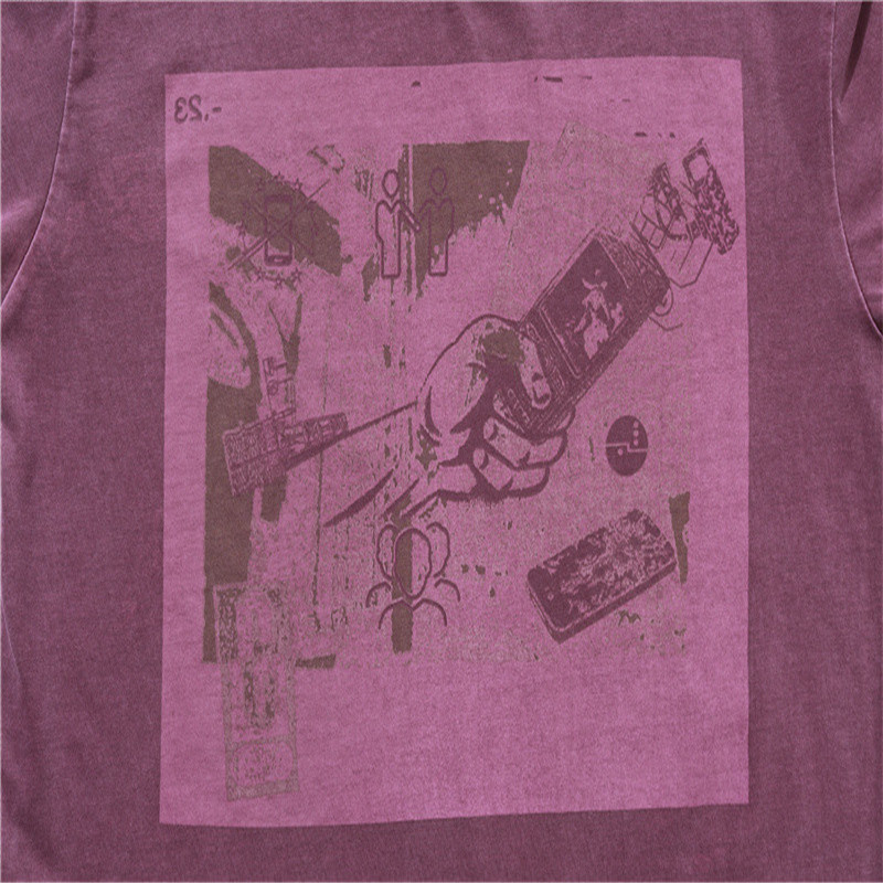 CAVEMPT水洗蜡染印花ce短袖T恤男女 日潮原宿抽风象图案半袖体恤 红色 s
