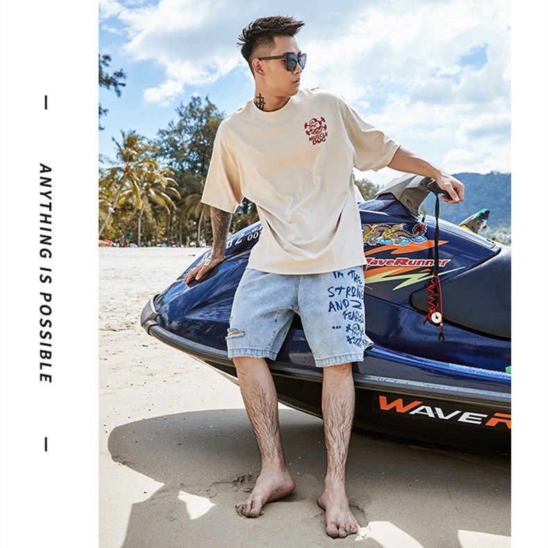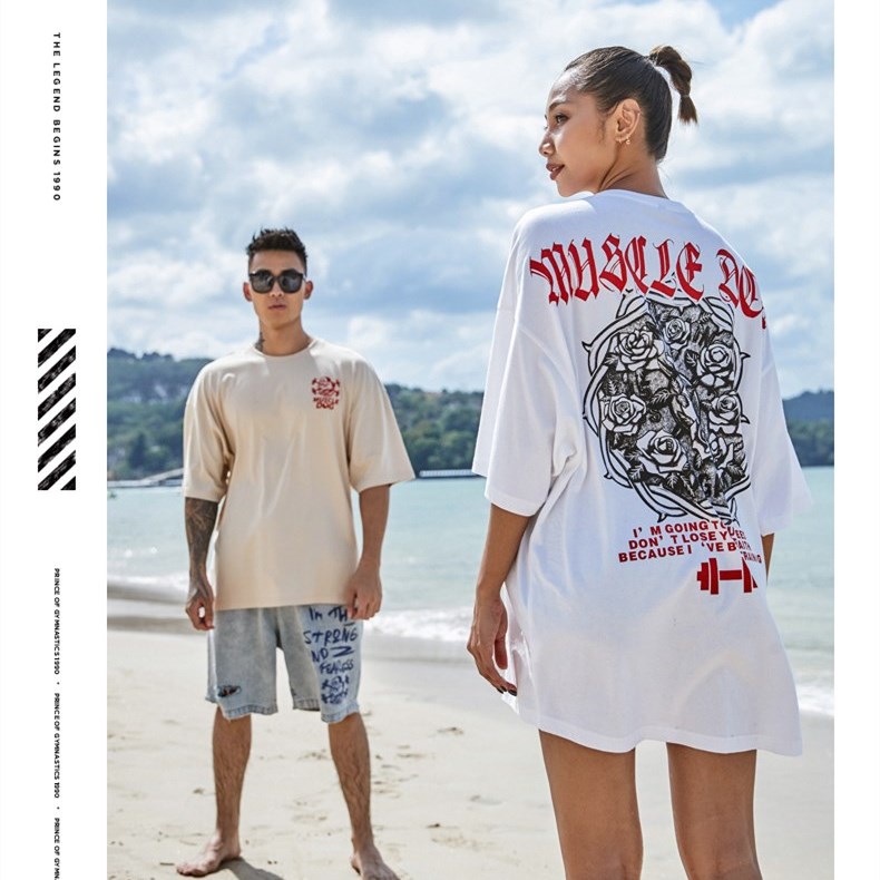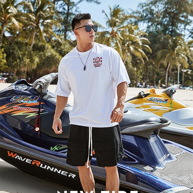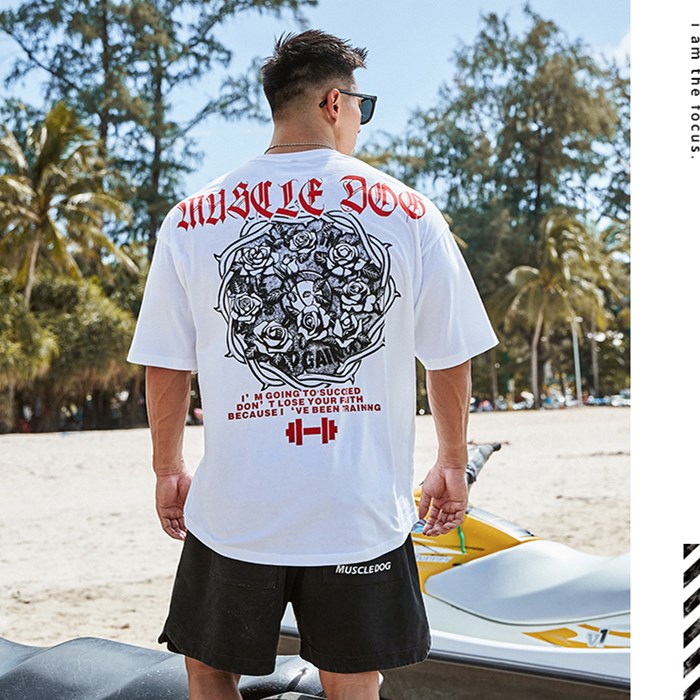 肌肉狗 丛野玫瑰潮流印花大码宽松半袖健身训练衣服运动短袖T恤男
