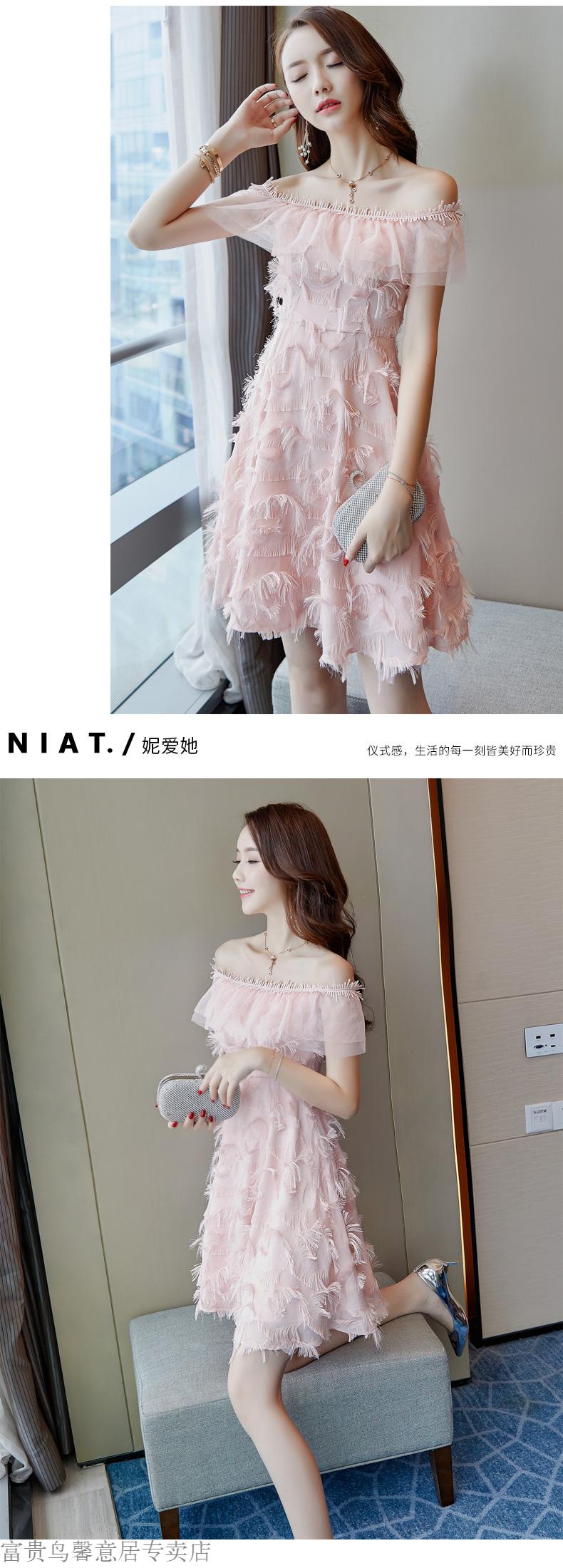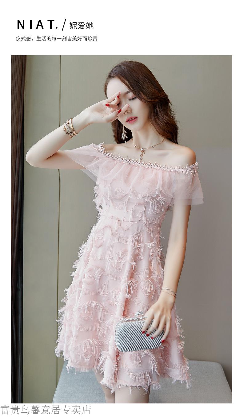 商品名称:富贵鸟 2021年新款春装平时可穿礼服性感小个子露肩一字肩连衣裙子女夏季 白色 L