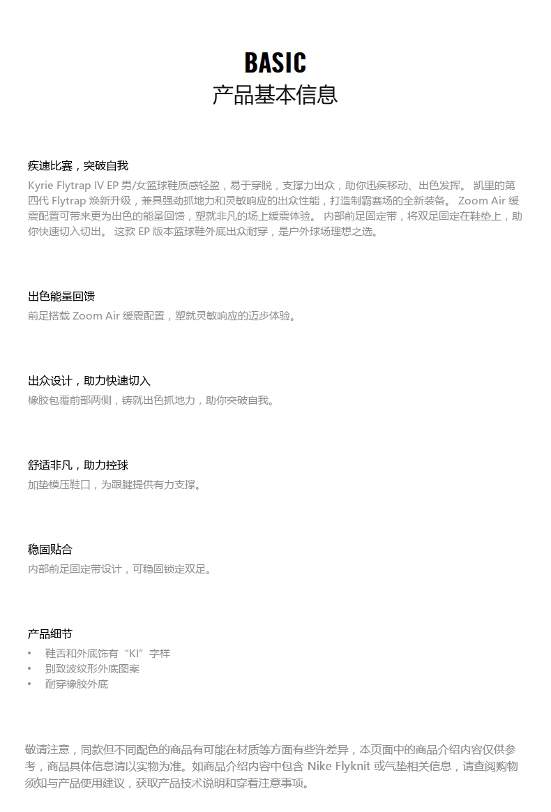 耐克 男女 NIKE KYRIE FLYTRAP IV EP 篮球鞋