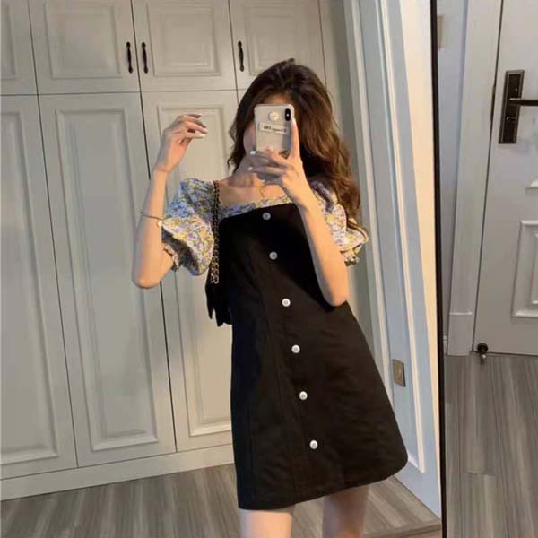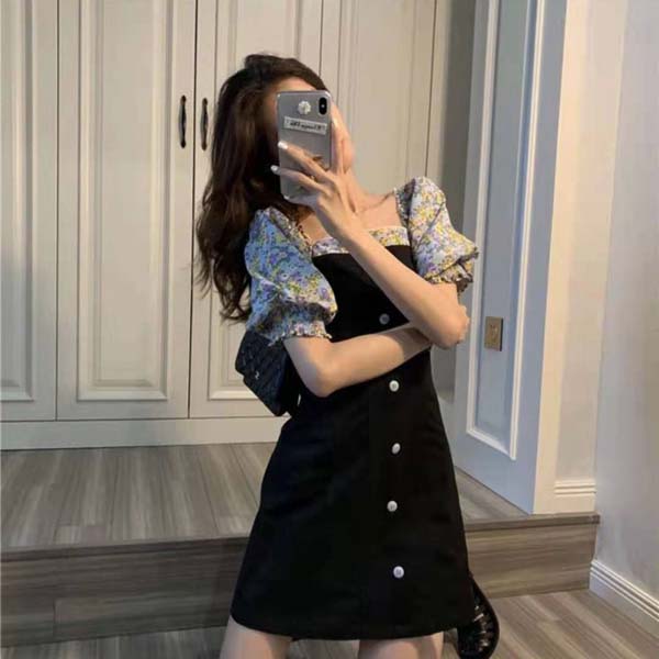 碎花拼接气质短款裙子,材质好,显腰身,质量好,面料好。
