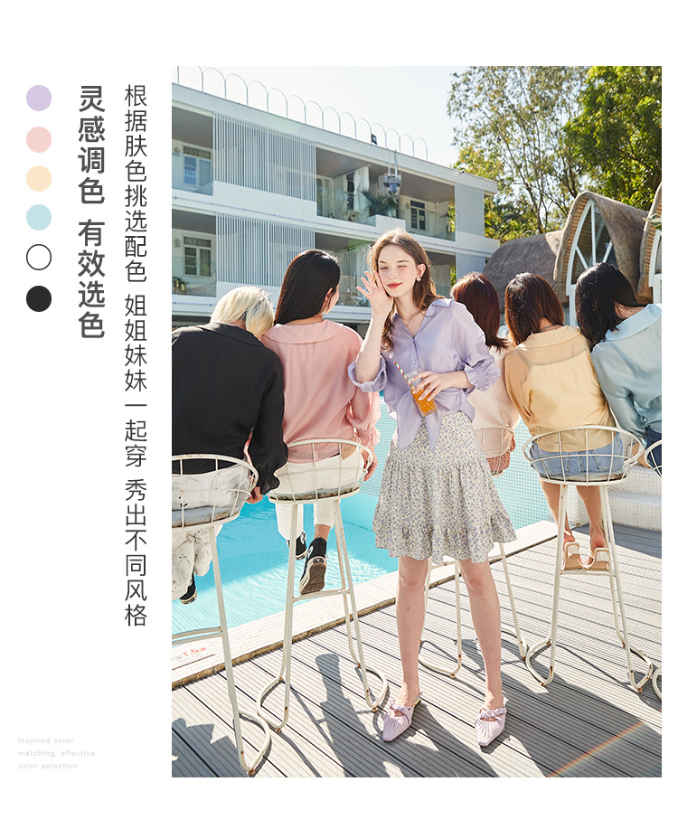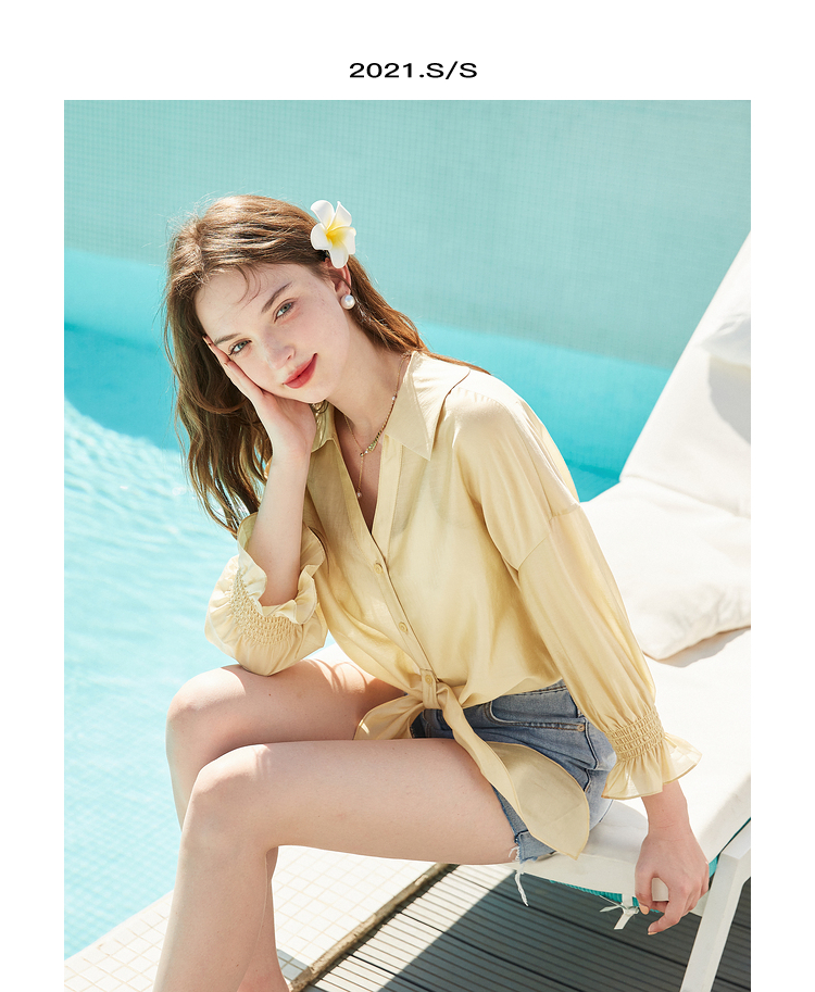 商品名称:秋水伊人简约衬衫2021夏新款女装优雅淑女风弹力微喇长袖上衣开衫 黄色 XL