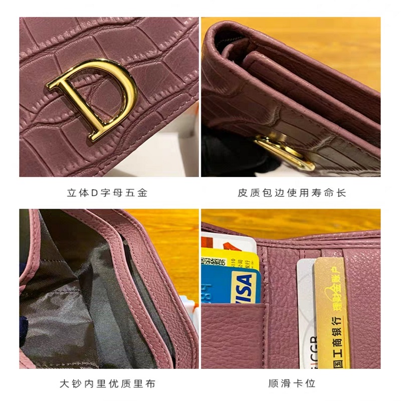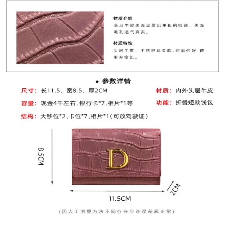2021新款钱包女短款轻奢三折石头纹真皮折叠钱夹D 家字母小众设计 粉色