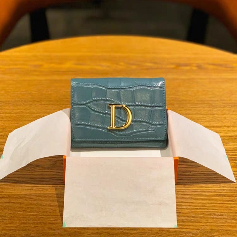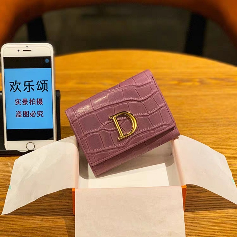 2021新款钱包女短款轻奢三折石头纹真皮折叠钱夹D 家字母小众设计
