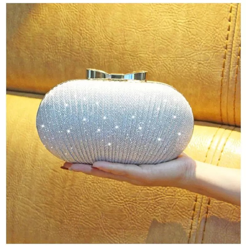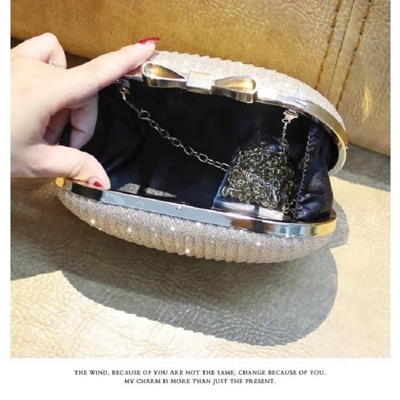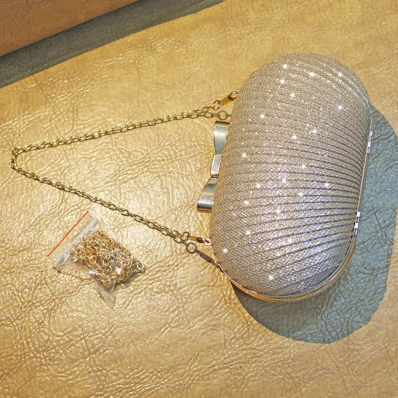 精致可爱的鹅蛋形小包,做了香槟金褶皱工艺的效果,拿在手上比较巧,适合一些场合搭配,包包外尺寸:20*12*4cm,配送长短链子可单节斜挎