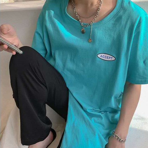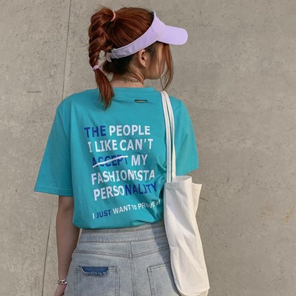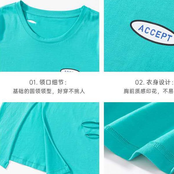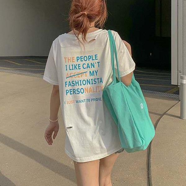 开叉短袖女破洞t恤宽松不规则纯棉上衣,