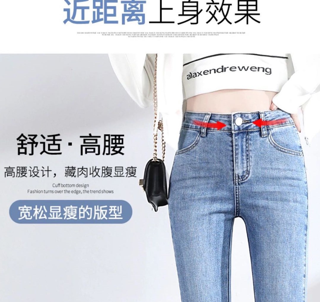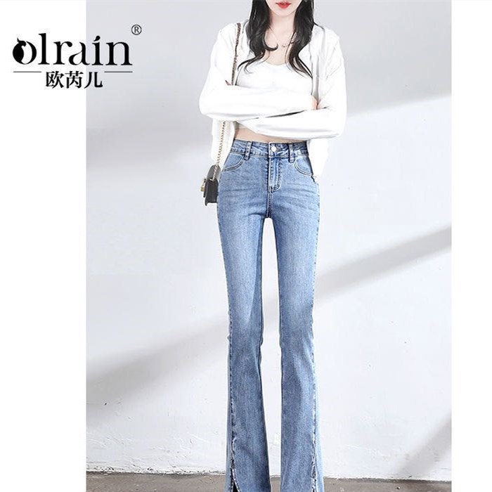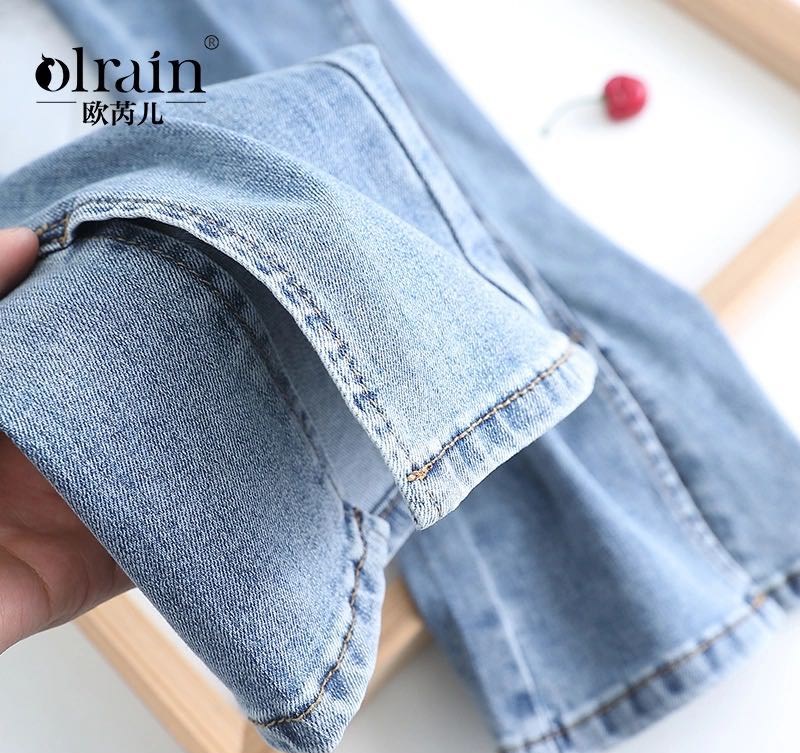 OLrain欧芮儿开叉牛仔裤女宽松高腰垂感弹力显瘦