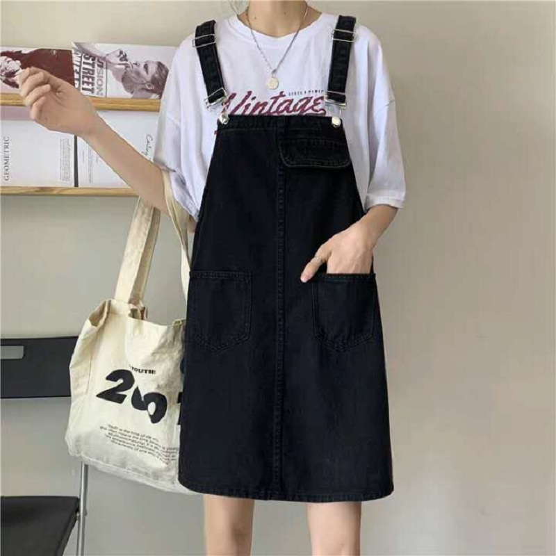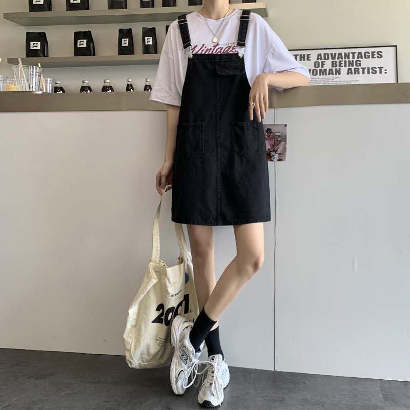 背带裙内搭纯色白t恤+小白鞋就是超级经典的背带裙穿法,随意营造出轻松时髦感。白T是超“简单粗暴”的时髦单品,与背带裙很搭。夏天这两种基本单品组合青春无限的小美好。