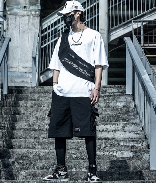 在工装裤版型的基础上,进行加工创造,增添具有时尚的元素,设计此款前后多个口袋,便于收纳随身物品,也凸显了单品的美式街头工装风格。