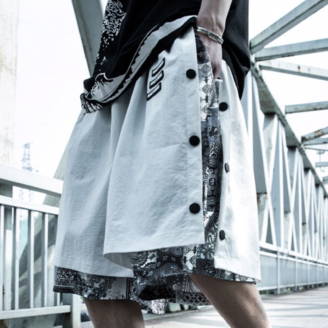 AOGZ腰果花拼接短裤