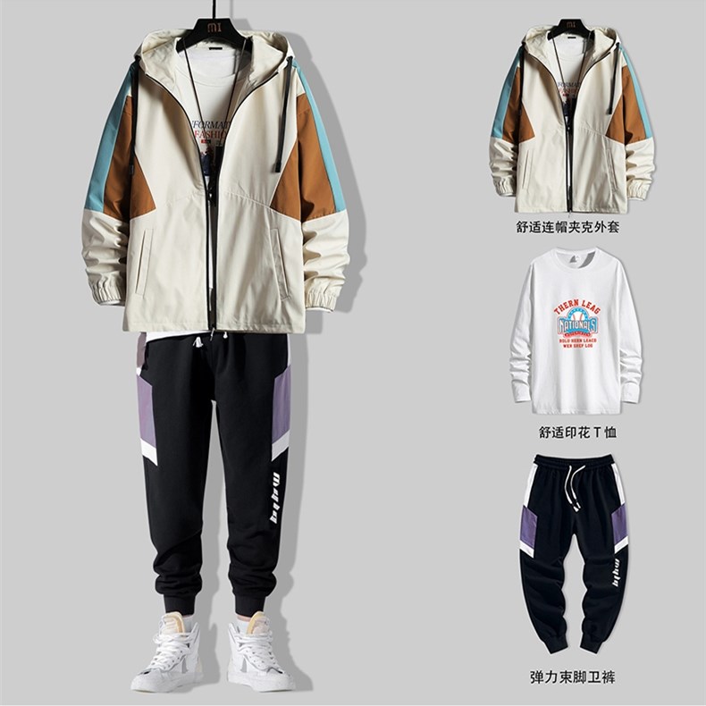休闲套装春秋新款ins潮牌夏季工装夹克男装帅气一套搭配