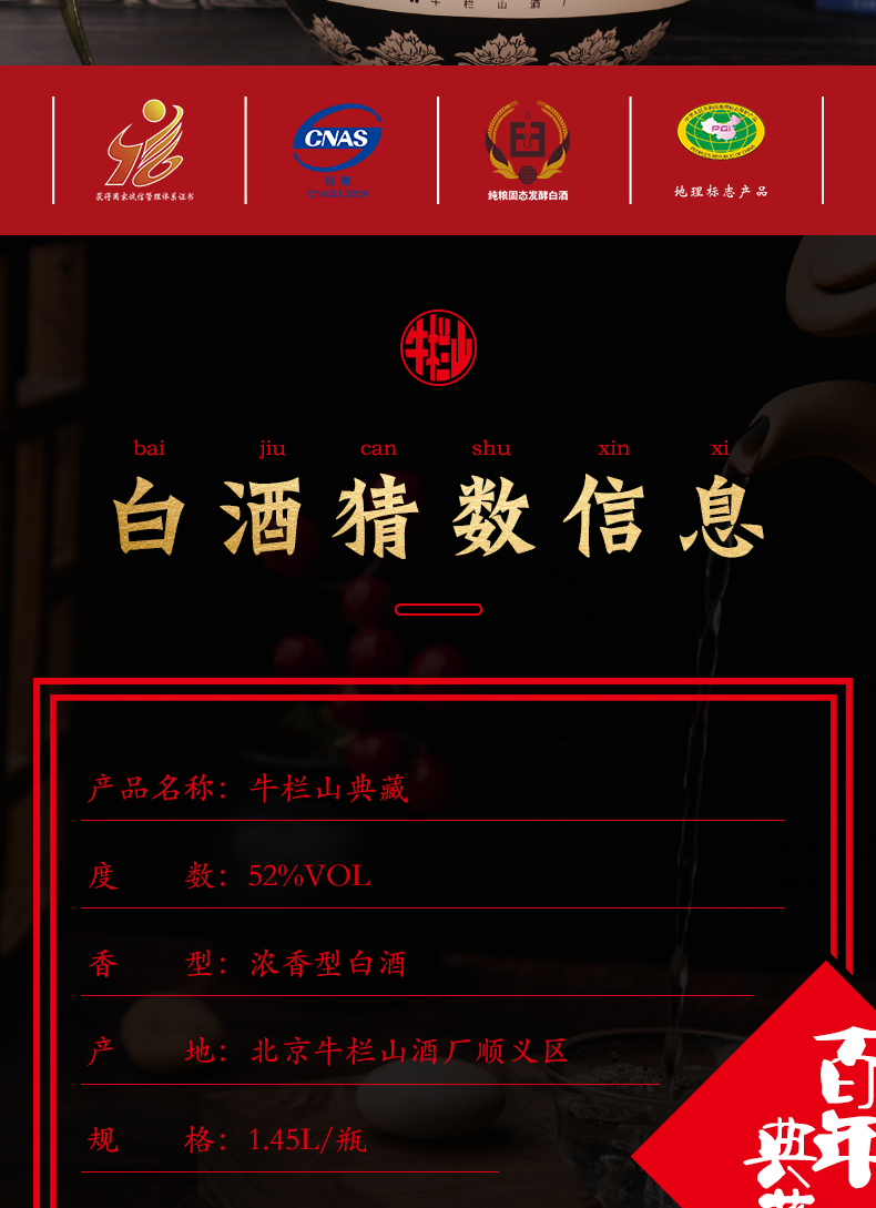 产品名称:牛栏山 典藏 1.45L 52%V...
