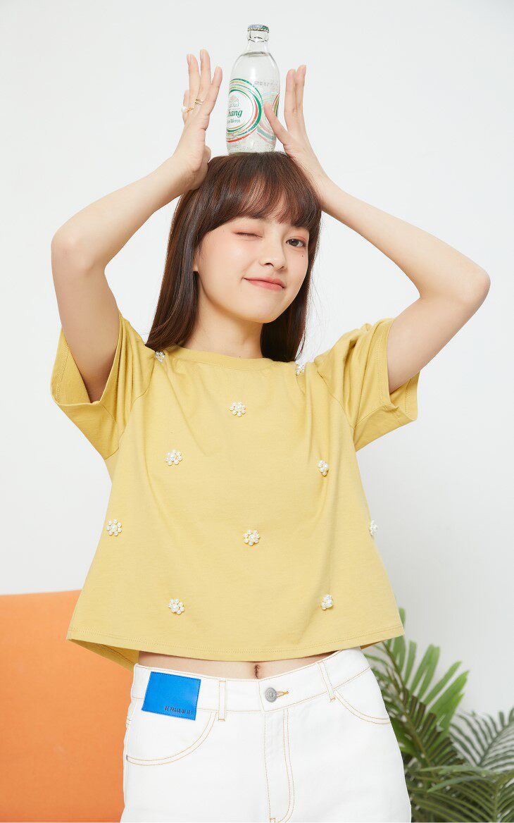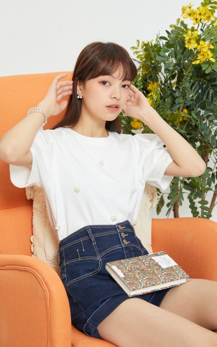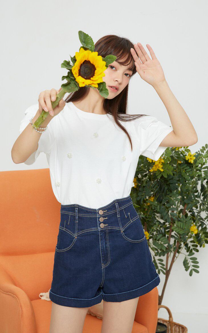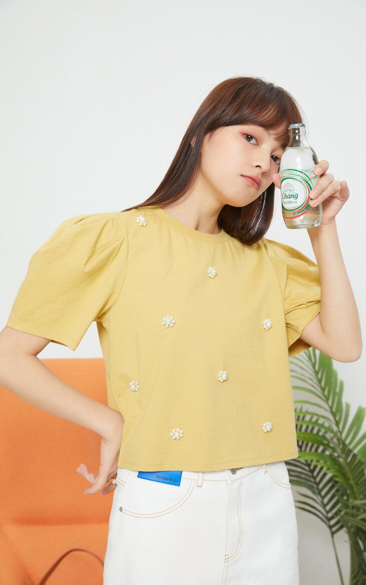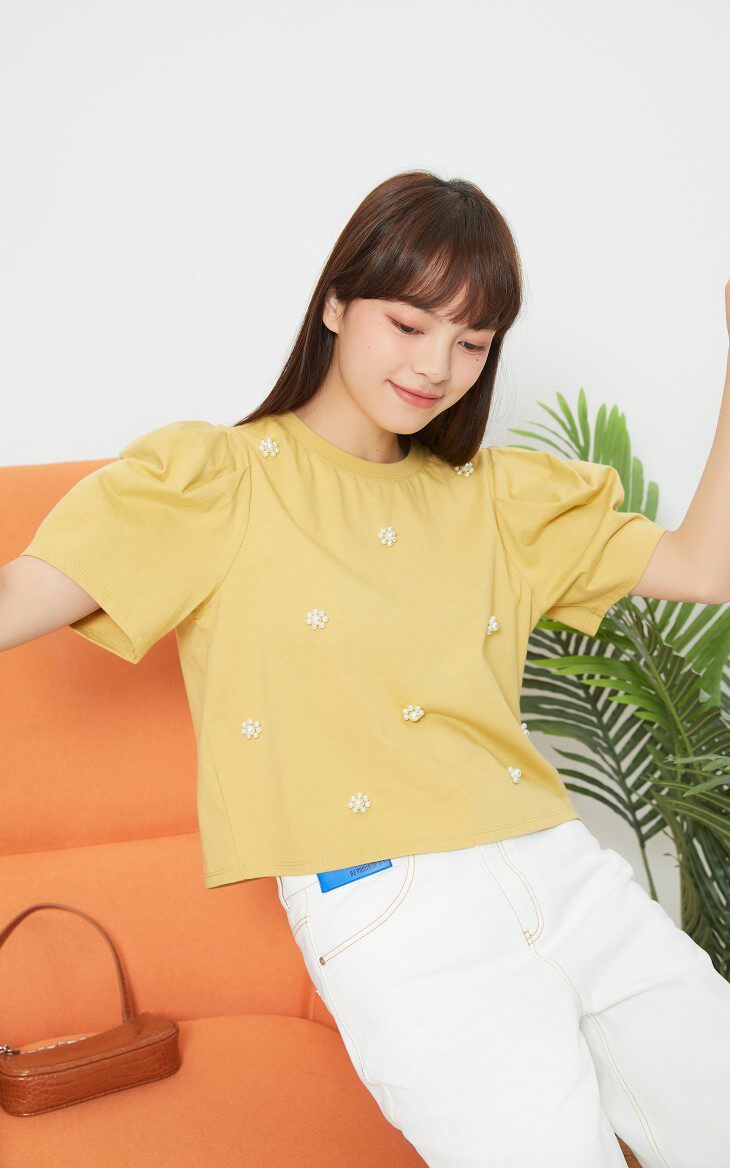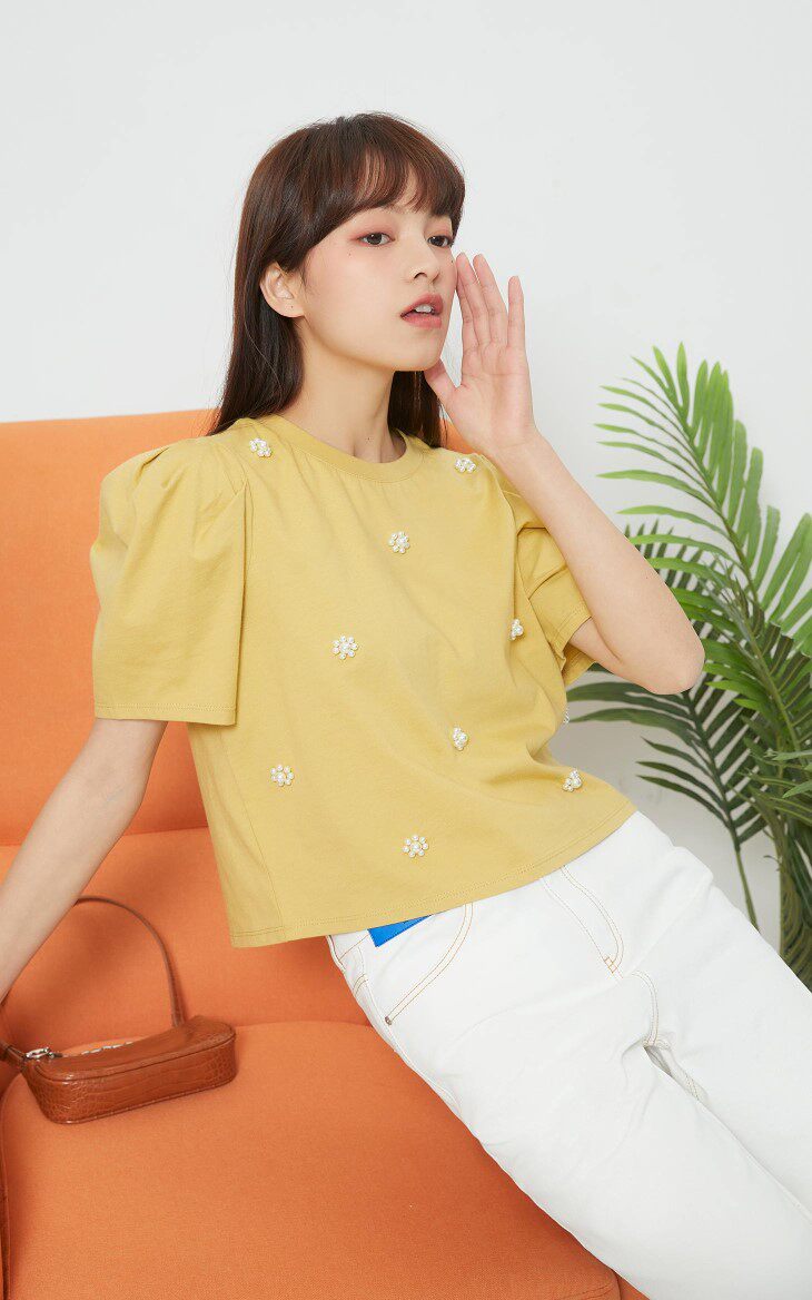 设计卖点:仿珍珠装饰,泡泡袖设计,立体装饰