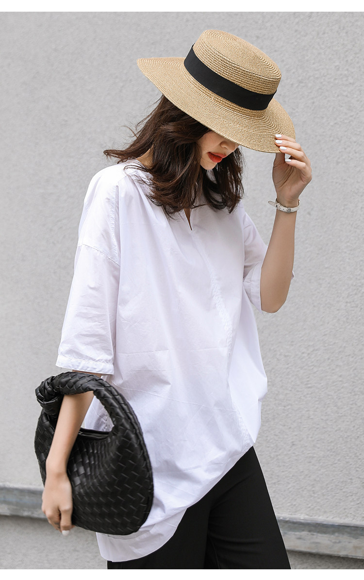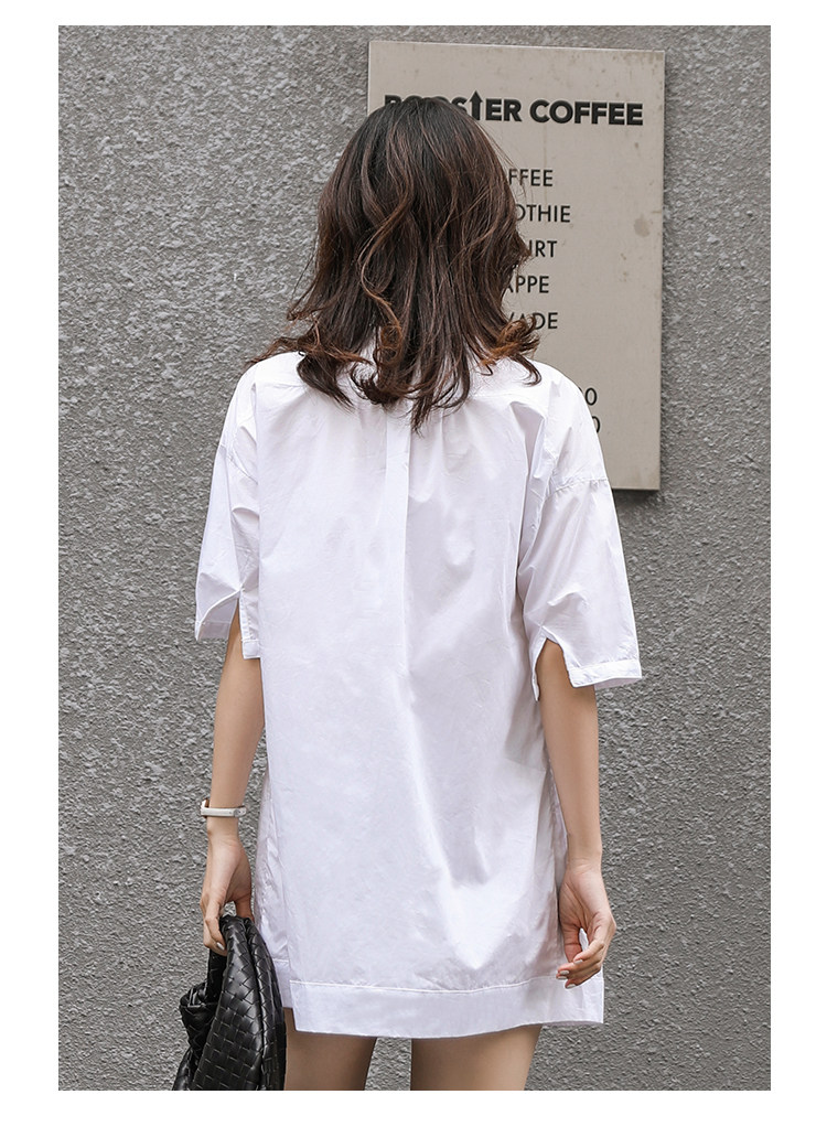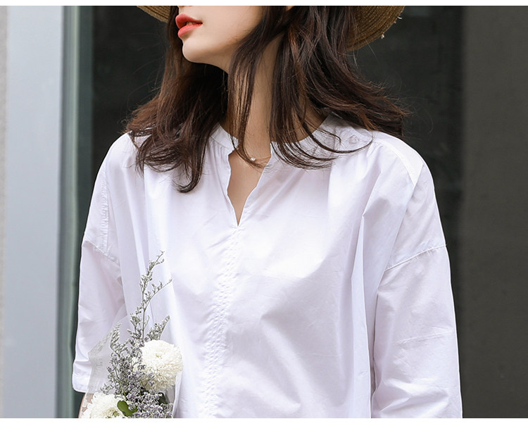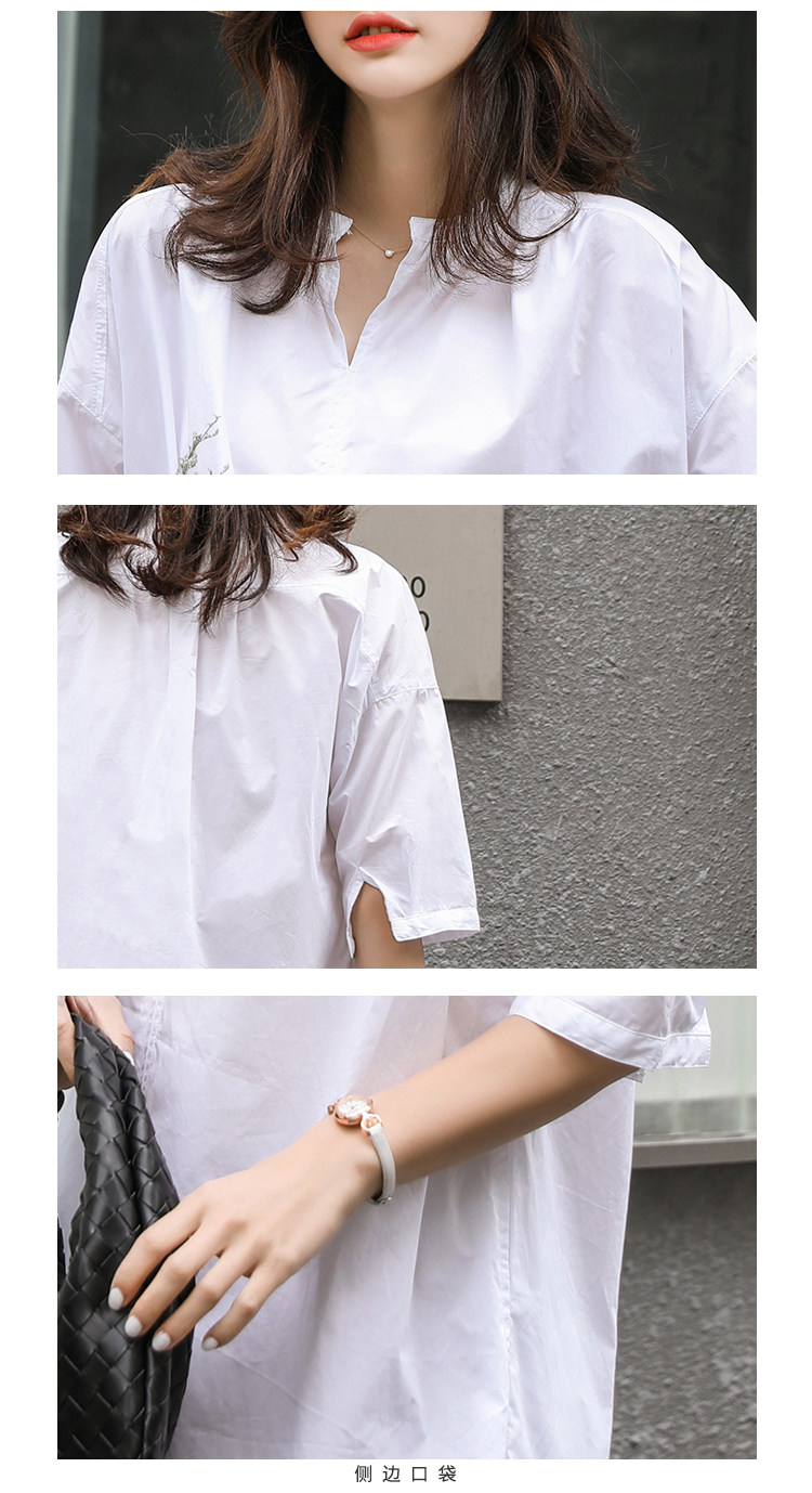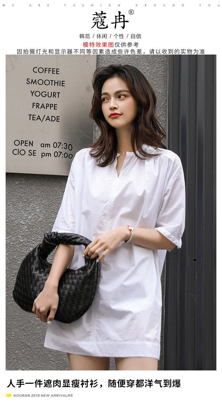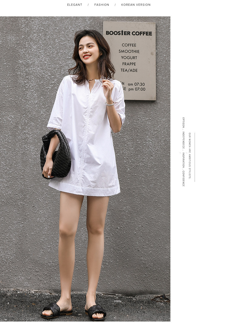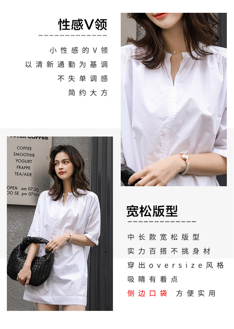 衬衣女新款2021年V领衬衫裙女宽松版型五分袖中长款洋气上衣女