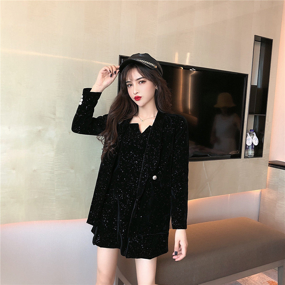 颜色分类: 黑色外套 黑色吊带